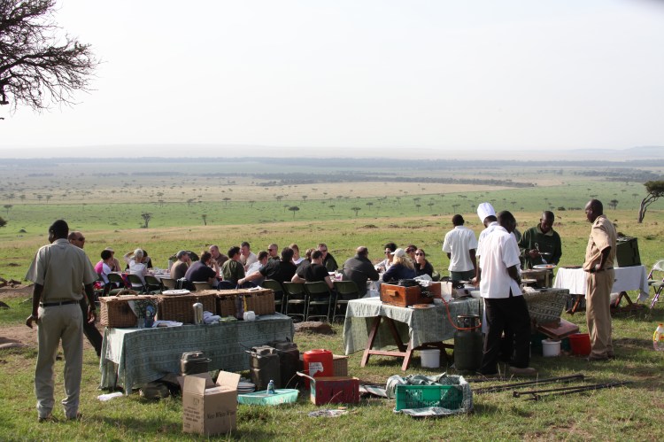 To be greeted by Masai warriors, smiles all around, and a service beyond compare was an experience. The lawnmowers were a flock of warthogs, grazing calmly among the lounge chairs and sofas on the lawn. The setting was sublime, overlooking the plains, and with lush greenery all around the camp. The animals are fenced out, or the humans fenced in, depending on how you look at it, so walking around the campgrounds was relatively safe.