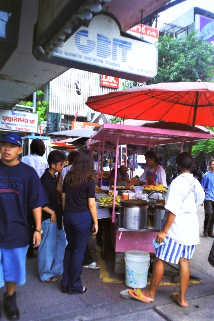 Last night in Bangkok, which feels good. We have realised that we’re probably a bit old to be “proper” backpackers – we enjoy a little bit of luxury and do not like Bangkok that much. People stare a lot, and some seem suspicious and reserved, although many are also very polite and friendly. We don’t like the feeling of everyone trying to sell us something, or trying to trick us into something, we were charged double the price on our return trip by taxi today than we did going into the city this morning. We went to Siam Square and Siam Shopping Centre, not very interesting – very much like any shopping centre in Europe with McDonalds and Pizza Hut. Explored some of the smaller streets instead, but it’s just too hot, humid, polluted and noisy, so we went back to the hotel after a couple of hours. Went back to Hello restaurant at Kao San Road where we had great food; two dinners, one beer and a coke, costing us about 187 Bath, which is about 45 NOK/4 GBP. Have packed our stuff, will get up at around 5 a.m. have some breakfast, and leave for the airport at around 6.30.