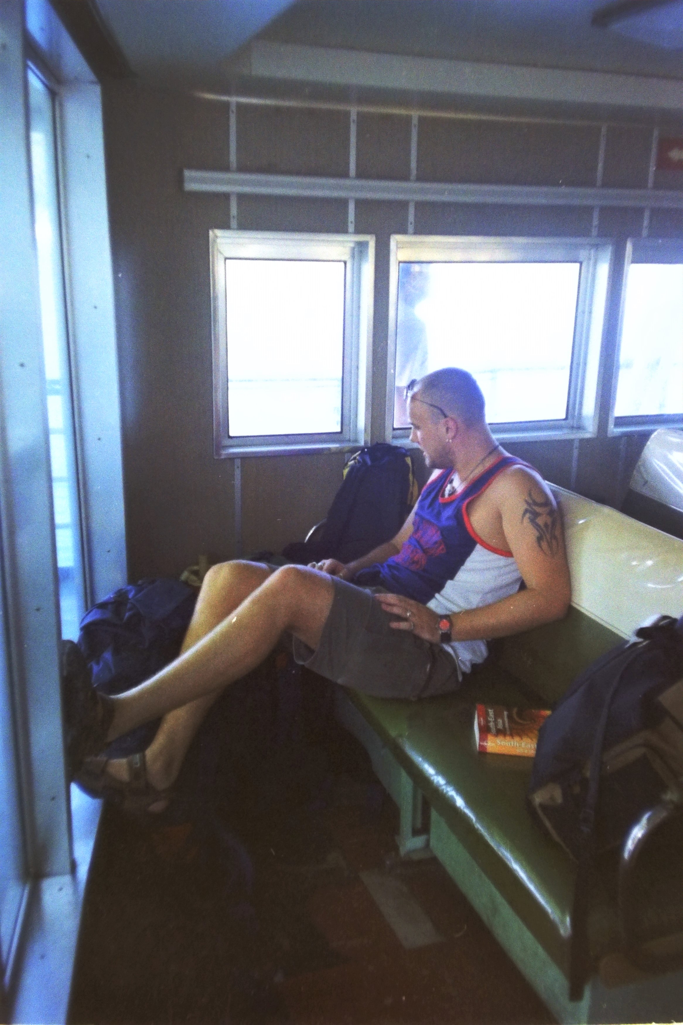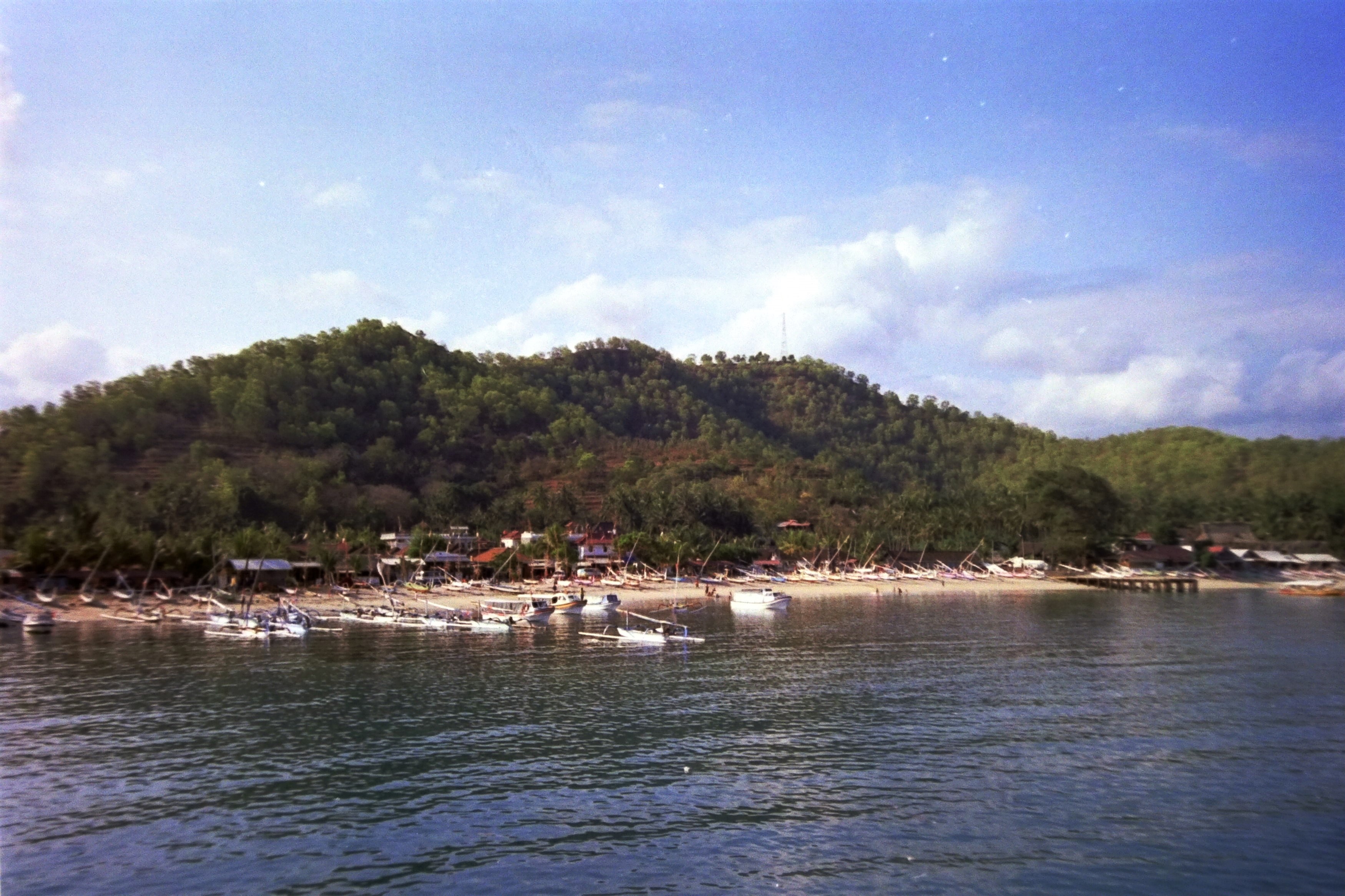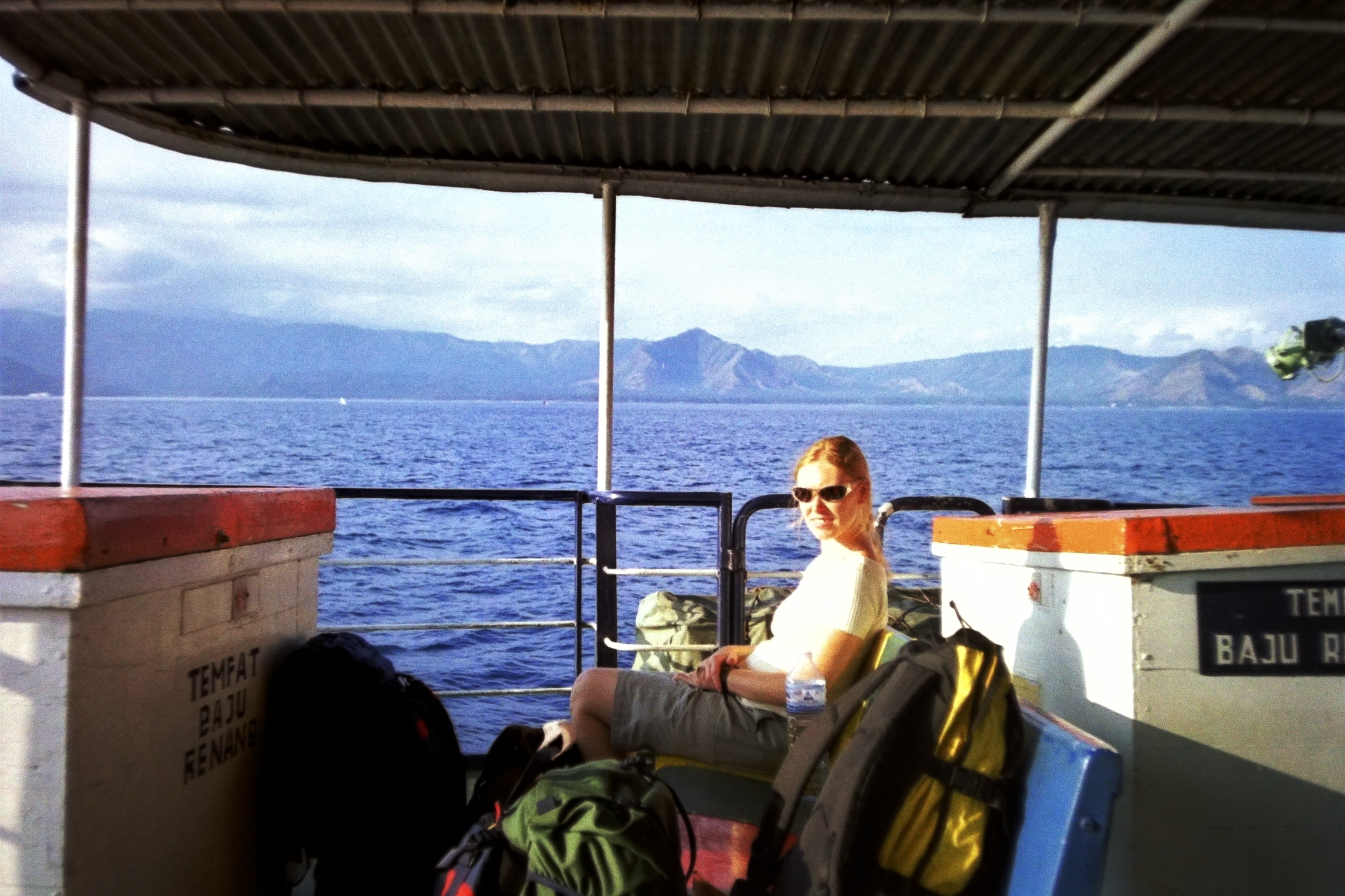 All I can see is the ocean, the sun shining from a sky partly clouded, and Bali in the distance – about an hour’s ferry ride away. Only three hours until we arrive in Lombok, then 45 minutes by bus to Sengigi Beach where we are planning to stay. The ferry is making strange noises and it is quite rusty, don’t think it would have been approved as seaworthy in Norway, but I’m sure it will reach its destination today as it has on so many trips before this one. Feeling a bit under the weather today, probably the cold, but I might also get some side effects like nausea from the malaria pills. Probably better than getting malaria though. Got quite late last night, met a nice English couple; Charlotte and Ian, and had some drinks together with them. Broke my “food rules” yesterday, too; had king prawns and green salad after eating just bread and vegetarian curry and rice until now – very tasty. Went by bus from Kuta today to Padangbai where the ferry departed. Got to see quite a bit of Bali, very green and lush! Lots of palm trees, rice fields and beautiful flowers. Looking forward to staying at one place for a few days, maybe we’ll rent a car, maybe we’ll book a trip to see the Komodo dragons, or maybe we’ll just stay on the beach and do some snorkelling. I don’t know yet, and it feels good not having to plan everything ahead, we’ll just see what we feel like doing. That’s what a vacation is all about – and imagine – it’s more than three months still left of our trip. A bit more expensive here than in Thailand, but a nice dinner costs around 20-50 NOK (2-5 GPB). Bargaining is important – yesterday’s taxi driver told us it was up to us how much we would pay. Today’s driver on the other hand tried to trick us into paying more than we should. Bought some trousers yesterday, after some bargaining, I got them for 17,000 rp, around 50 NOK/5 GBP – down from 25,000 rp, not bad. Wish I had a lot of money, or that Bali was the last stop on our trip – there is so much nice stuff to buy.