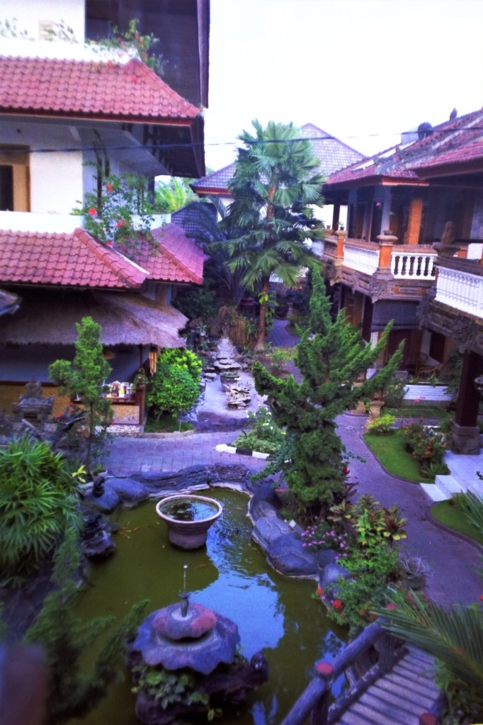 After a night of little sleep, it was back to travelling again and first it was a taxi to the airport. It was a relief to leave Bangkok. In the flight to Bangkok the commercial said that it was the city of smiles, but we experienced few or none who even remotely tried to be nice or polite. Bangkok was one of the most polluted and noisy cities I have ever been to! Our flight took us via Hong Kong, I had caught some sort of stomach bug in Bangkok, so the flight was spent mostly in the toilet. We had the gayest flight crew ever! It was an all-male crew, all must have been ex musical performers or something, the entertainment level was hilarious. “Coffee? Tea? Me?” was served with the beverages – it was like a non-drag drag comedy show all the way to Hong Kong. The flight path into Hong Kong was bonkers! I felt like the plane was going to land into a block of flats! We could see the people who lived with the flight path literally in their living rooms and what they had for dinner! And when we touched down it felt like we were going to drive into the sea! Bonkers! After a 1 ½ hours stop, we took off in between the skyscrapers, I wish we had a longer stopover here, could be fun to see Hong Kong. Our musical air steward crew was with us all the way to our next stop in Singapore. It was a bit unnerving when the cabin started to smell like something burning but the captain told us that this was from the forest fires that currently was still raging out of control in Sumatra. When we landed in Singapore it was almost zero visibility, and even though it was mid-day it was almost dark, the sun was shrouded by the thick smoke that hung in the air. No very nice at all. From Singapore to Denpasar in Bali the flight was filled with a lot of young people like us. We landed in Bali quite late and booked a hotel room at the airport. The hotel was ok, nothing more but still expensive. Fell asleep immediately after hitting the pillow after almost 24 hrs travel nonstop.
