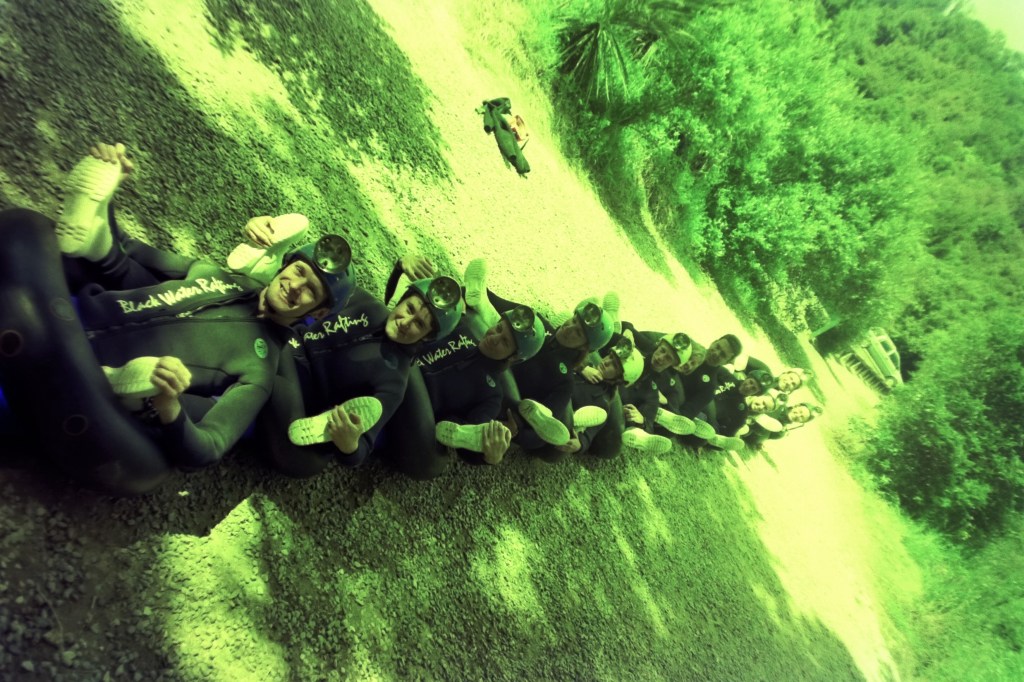 What a day and what a birthday! We’ve been going full tilt from 9.45 a.m. to 8 p.m., and I really mean full tilt! We’ve done both blackwater rafting 1 and 2. Started with number 1, we were equipped with wetsuits, socks, boots and helmets with torches before a 10-minute drive to Waitomo Caves.