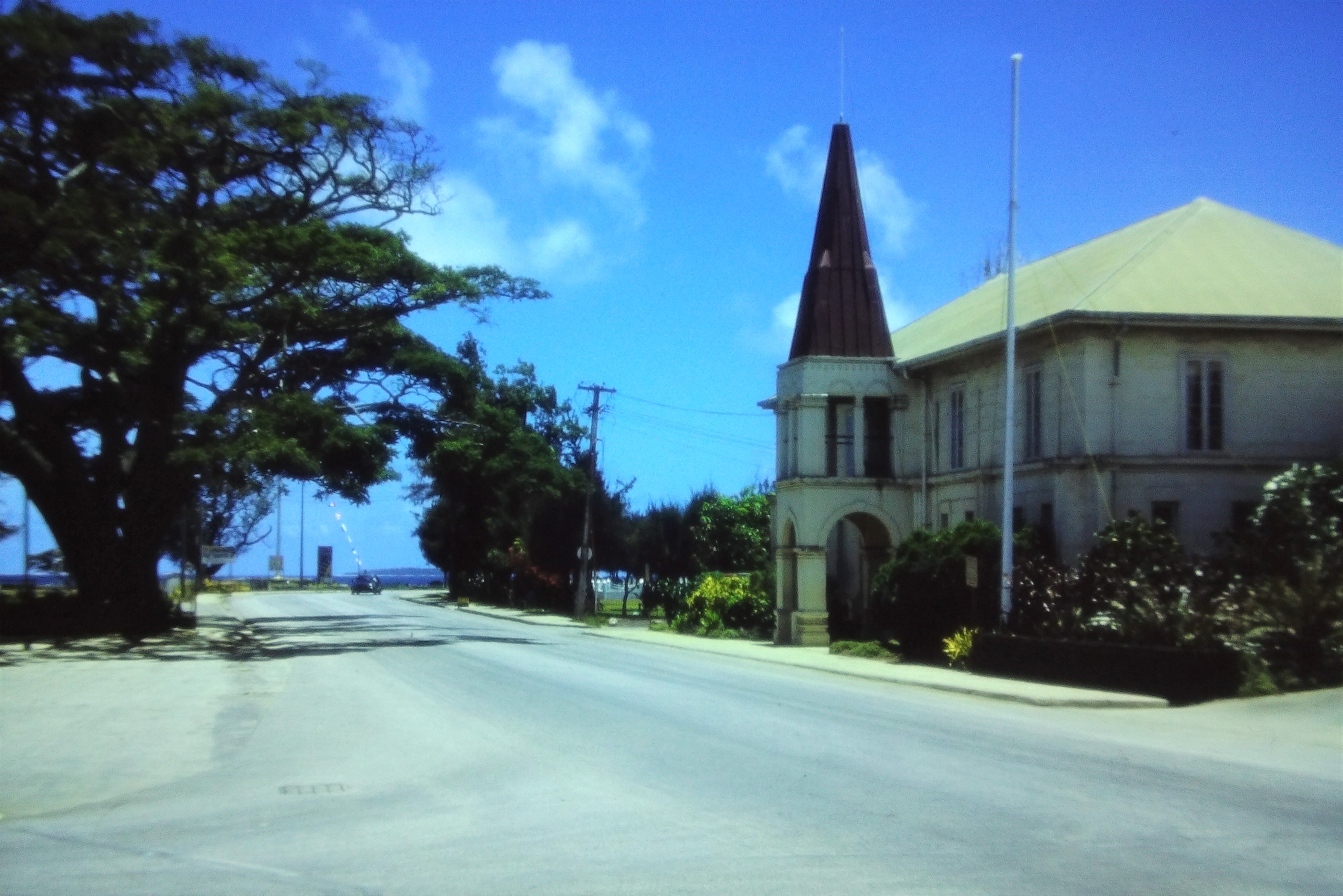 Doesn’t seem too nice to swim here though, a big reef just by the waterfront, and quite murky water. We’re in the capitol, which doesn’t really look like a city at all. Luckily, we found a supermarket that was open, so we finally got to eat. Maybe safest to cook ourselves, don’t want to get any stomach problems again. Feel like proper tourists again, people are staring at us, maybe not so strange – haven’t seen many other tourists so far, so probably not high season. Met a Swedish couple who’d been the only ones apart from two other people on Sun Island. A bit nice too, that there aren’t too many tourists here, will probably be different in Fiji. Hope Tourist information will be open tomorrow so we can find a place to stay by the beach for a few days. The locals seem a bit reserved and sceptical towards us. The royal palace is situated close by, looks like a villa in Oslo – a big wooden house.