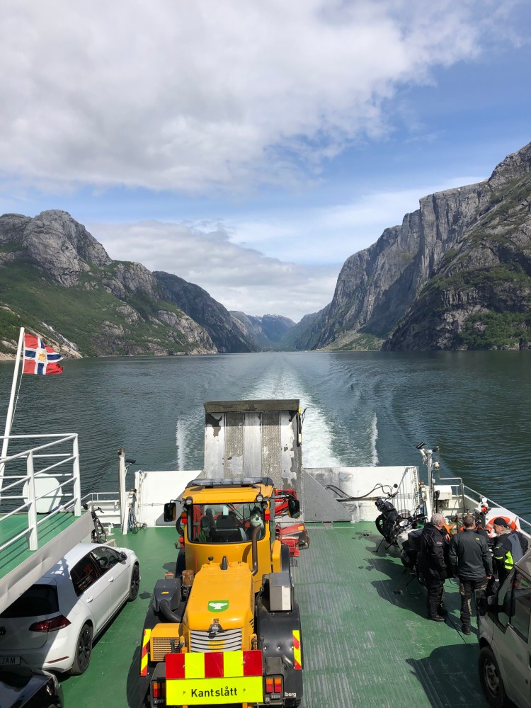 This is the site for Kolombus which runs the route, and you should choose from Lysebotn to Forsand (where you are close to Pulpit rock or the tunnel to Stavanger). If you choose the tourist boat run by Fjord Norway it also runs twice a day in each direction but is a bigger car ferry and the cost is a bit higher. Regardless of what ferry you end up on it will be one of the most epic ferry rides you have ever had. Passing the BASE jumpers point at Kjerag (they will do almost 30 second of freefall) before deploying their parachute.