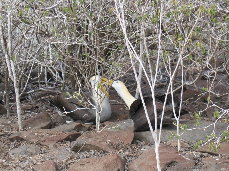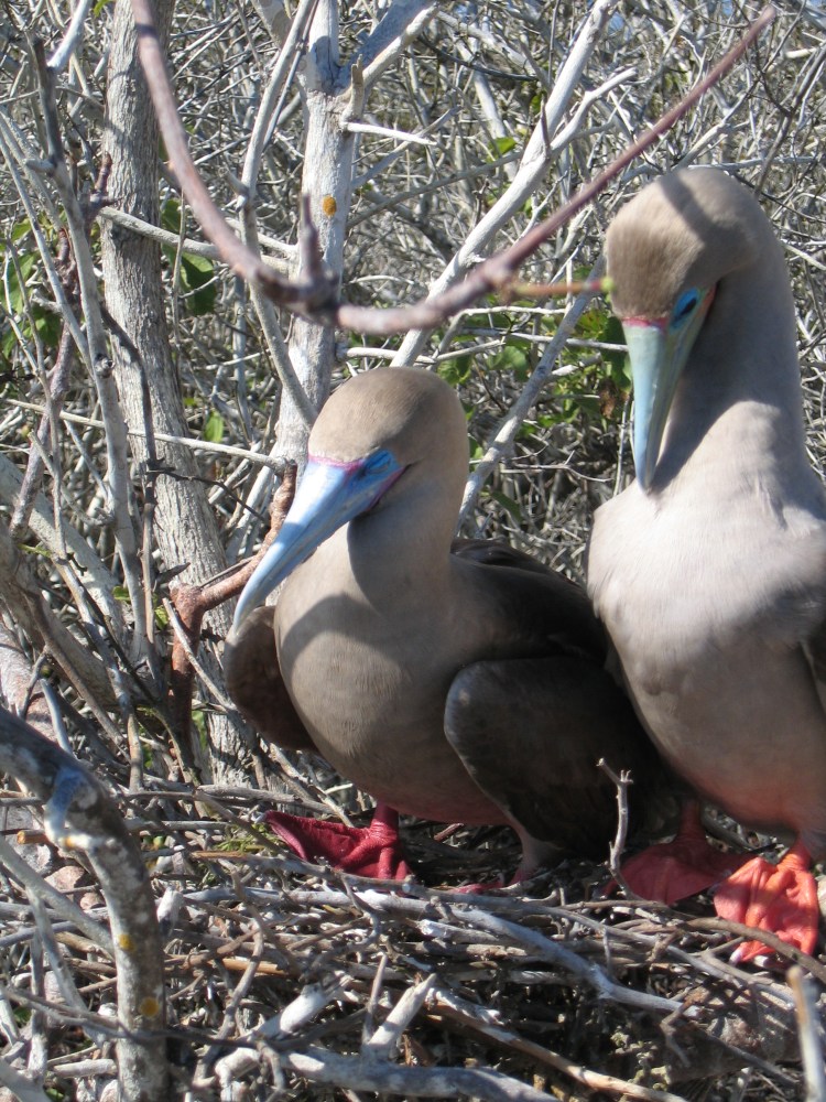 The blue footed boobie makes for great jokes, so does the red footed boobie, and perhaps also the masked boobie. Boobie jokes are easy to make, and the boobies are easy to love. The name is a corruption of the Spanish word “bobo” that means “clown” or “fool”, and indeed they are. They have huge blue or red feet and are extremely clumsy on land. Their dance is quite endearing, the couple will stand facing each other and lift their big blue feet in front of them to show their partner “Look at my big blue feet!” and the other one will repeat the dance “I have them too!” and great rejoicing and singing will ensue.