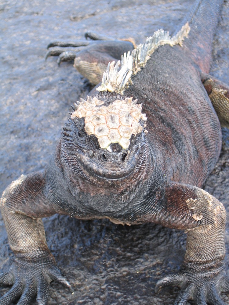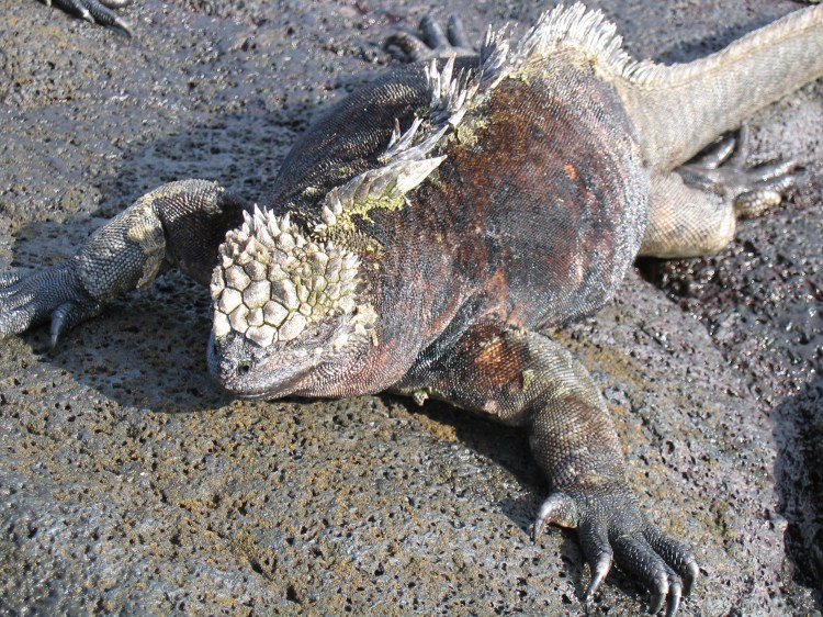 The marine iguana is perhaps one of the strangest and most unique creatures in the Galápagos. You see them basking on the rocks after lengthy dives under water to feed on the green algae. They need to heat up their bodies after the cold swim since they are ectothermic and need the sun to warm them up, and while they do this, they expel the salt from the algae via their noses in what looks like very wet sneezes. Perhaps surprisingly, Darwin did not like marine iguanas, referring to them as “clumsy lizards… imps of darkness.”