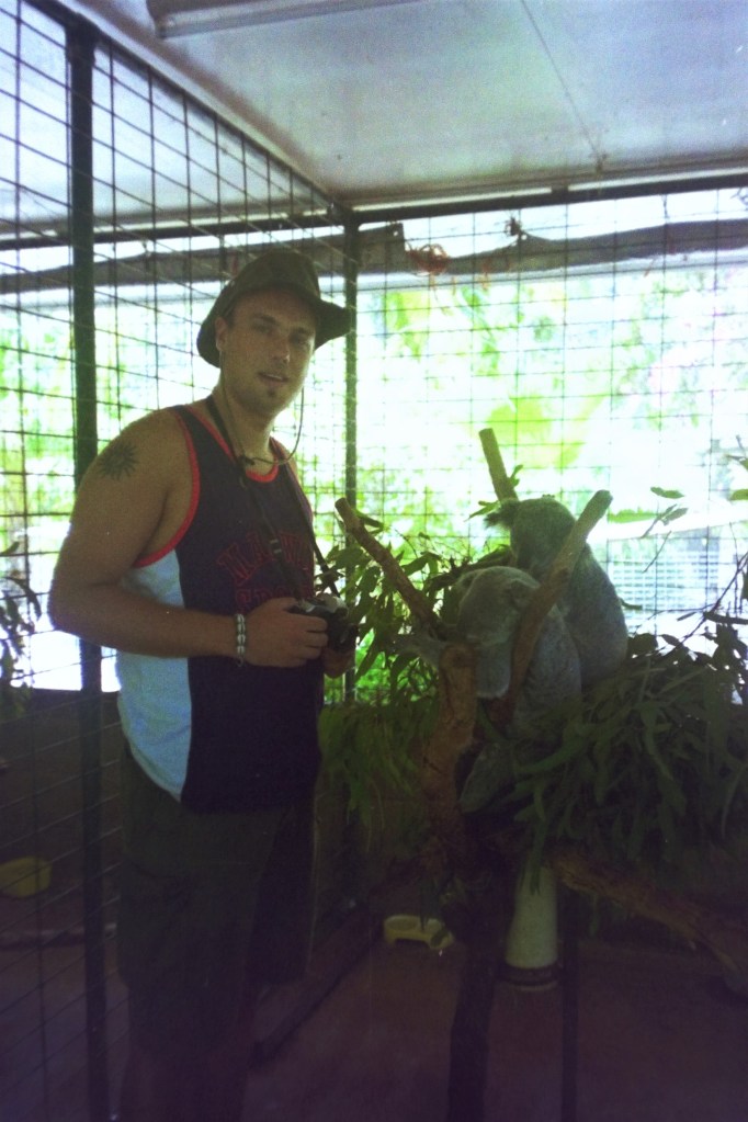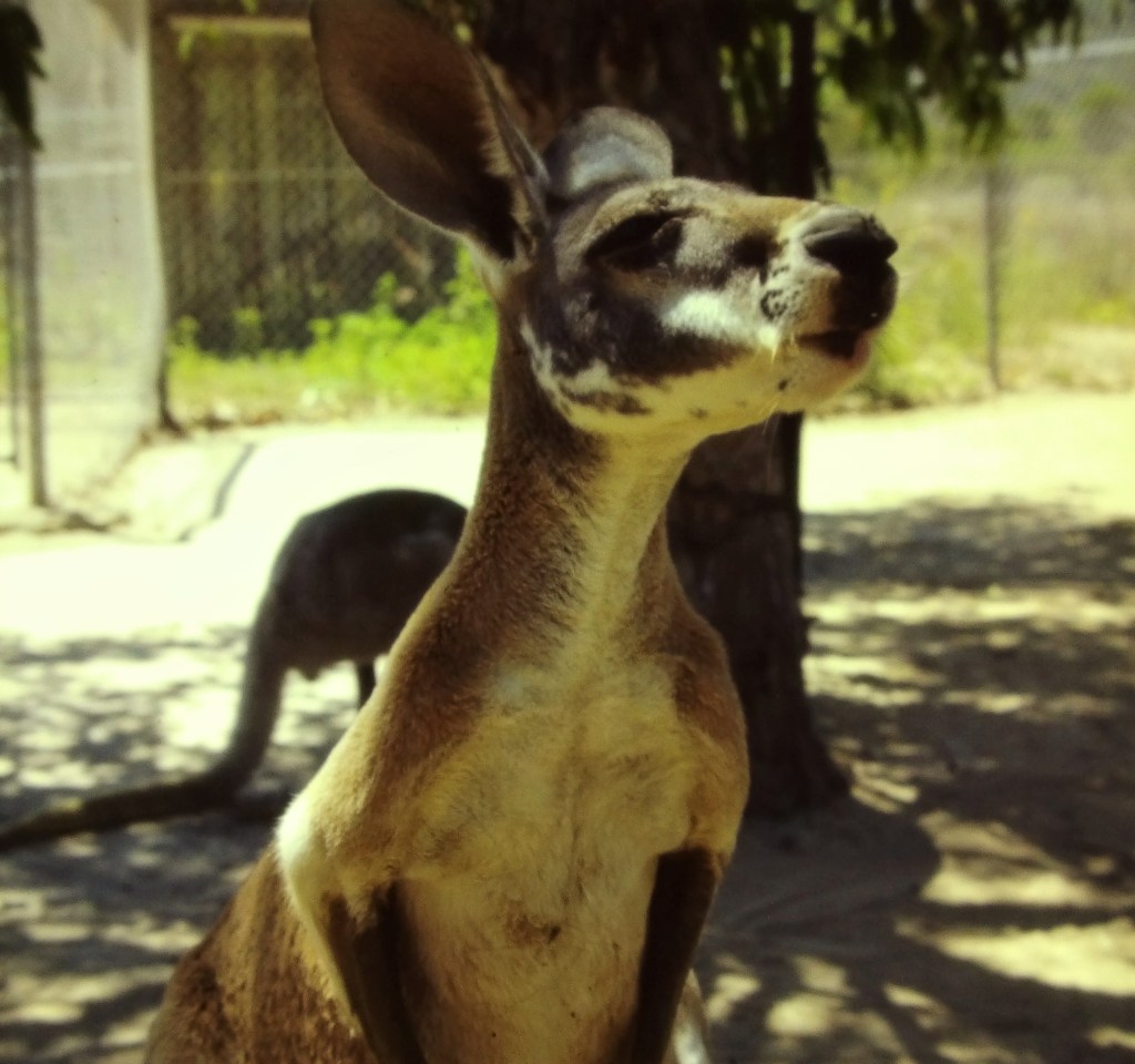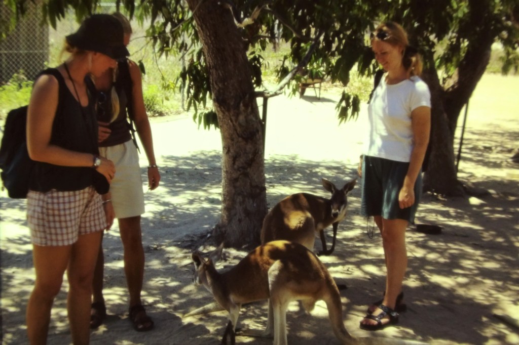 Strange feeling that it’s November, at home it will be wet, dark and cold, while here we are soaked with sweat. Today has been terribly hot and taking a two-kilometre hike when the sun is at its highest, not drinking enough, then you’ll get a bit faint and feel a bit unwell like I did earlier today. Anyway – we’ve had a nice day. Picked up the moke around 9.30 a.m. but were a bit disappointed to find out that we could only drive along the south and east coast, meaning the west and north coast was unavailable to us. Anyway – first we went to Picnic Bay where we arrived by ferry, then to Nelly Bay where we bought some food, then to Radical Bay and Florence Bay – a lot of unspoilt beautiful beaches. Unfortunately, there’s the danger of encountering box jellyfish, so we don’t dare swimming. Carried on to the Koala Park where we got to pet and take photos of the small, extremely cute animals who can sleep around 18 hours a day, we even saw a baby of about four months old who was in his mother’s pouch. There were also talking birds, saying things like “Hello darling”, and “You dirty old thing”, two big emus, and some kangaroos and wallabies, that we got to pet. Adorable!