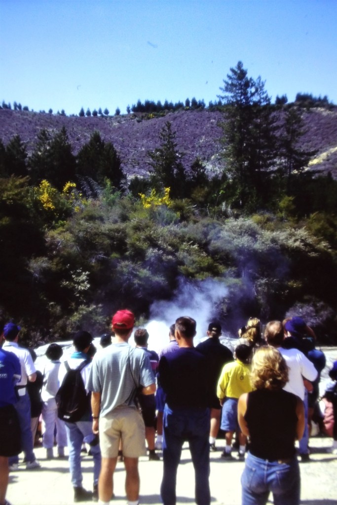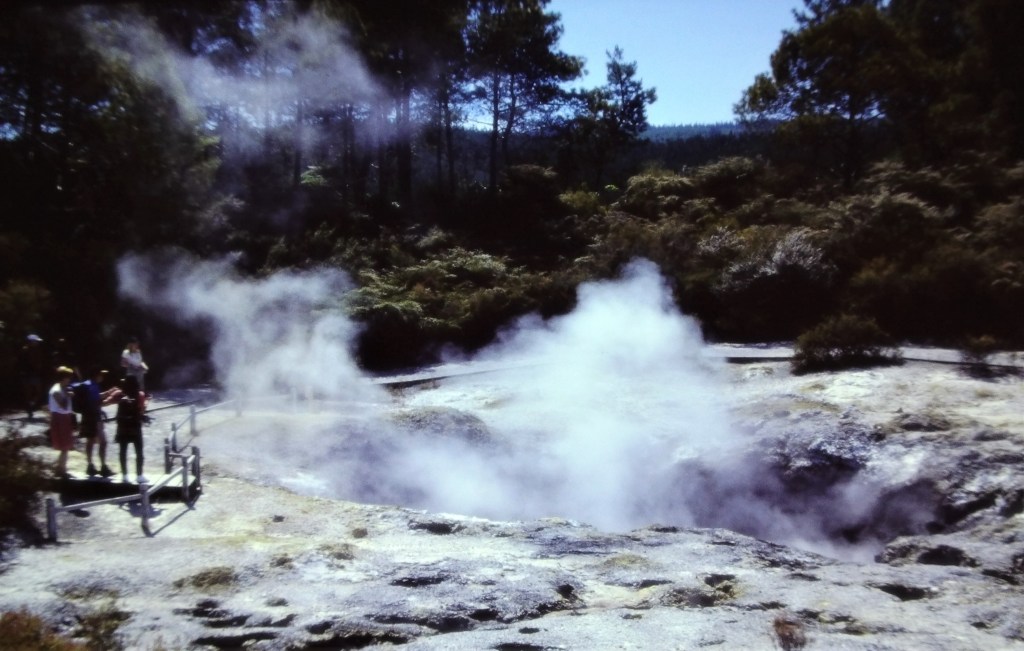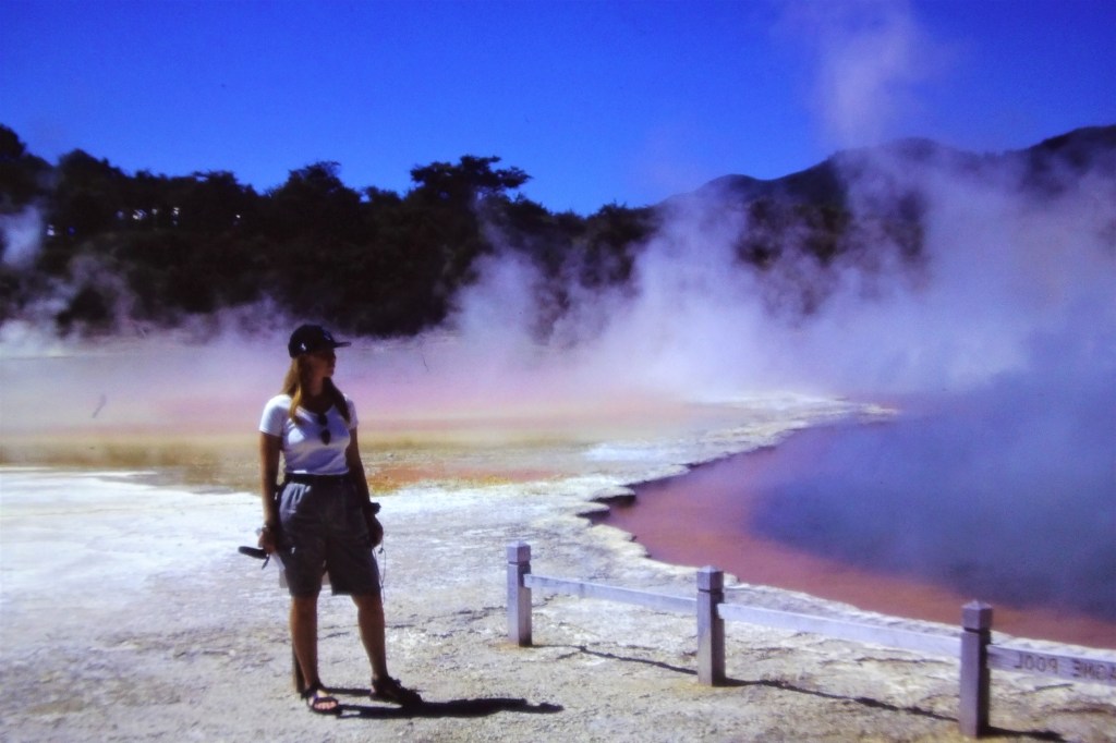 When we travelled back to New Zealand in 2005 we revisited all of those thermal parks around Rotorua, and even stayed in a hotel with boiling mud pools in the backyard. Read more about this here. We also got to see the mighty Huka Falls, finally.