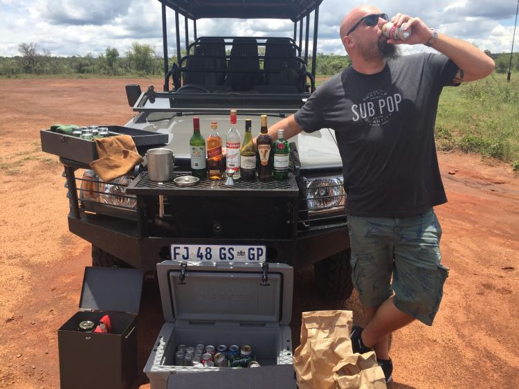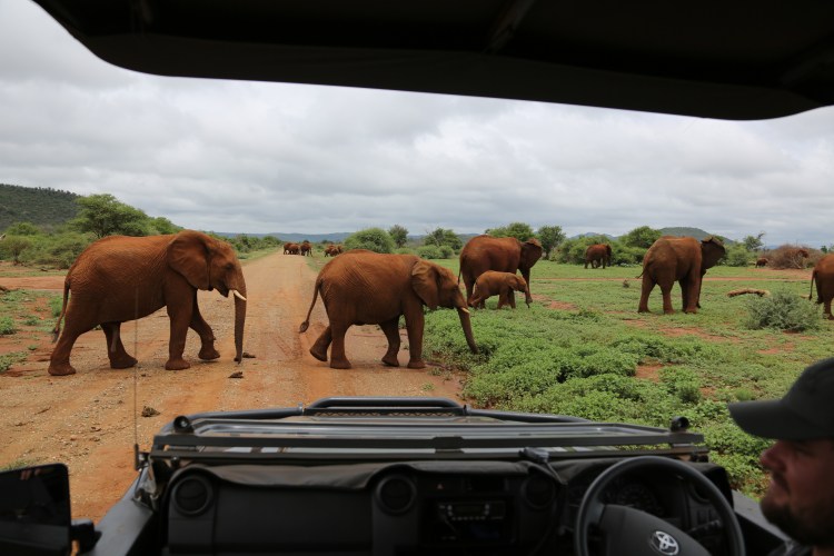 We had a wonderful experience with three elephant juveniles frolicking in a large pond, and we got up close and personal with a White Rhino. We had a cool and knowledgeable guide, and he knew how to go off-road, weaving through the bush like a champ.