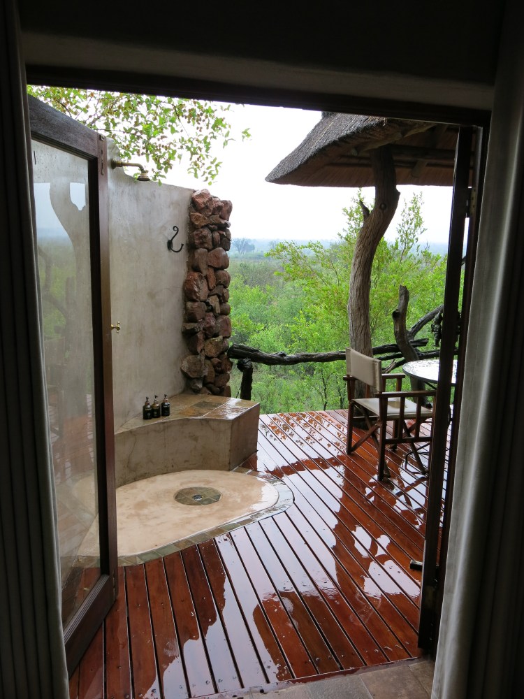Waking up and seeing wildlife grazing just outside the window is one benefit of having no fence around the lodges, we had a house kudu that kept waking us up every morning with loud grazing, the downside was that we had to have guards every time we left our hut in the evening, but that also made it exciting. The lodge itself was great, with outside shower, small plunge pool, fireplace in the bedroom and big bathtub to soak in after a long hard day in the jeep.