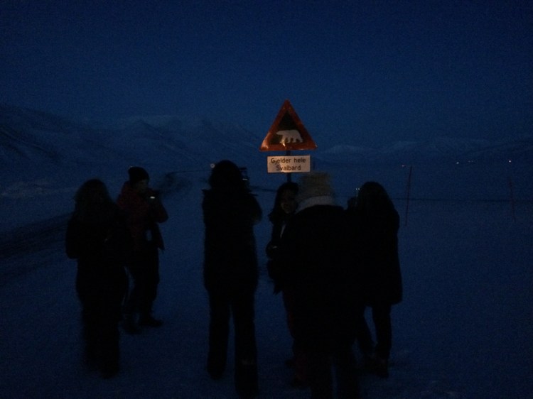 After arriving and picking up our luggage, we went straight on a dog sleigh trip to a permanent tent camp (it was almost dark so no photos) outside Longyearbyen. Since it had already gone dark, we did no see much, but the experience was something else. Probably comparable to sledding on the moon, not a tree in sight, no animals, pitch black darkness and the feeling of being very alone. At the tent camp we got a great meal made from reindeer and nice amounts of Aquavit. We were picked up after the meal by a vintage coal miners’ bus who had carried the miners to and from work for many years. The Radisson hotel had a roaring fire going in the lobby, so there was plenty of cold behinds warming up before bedtime.