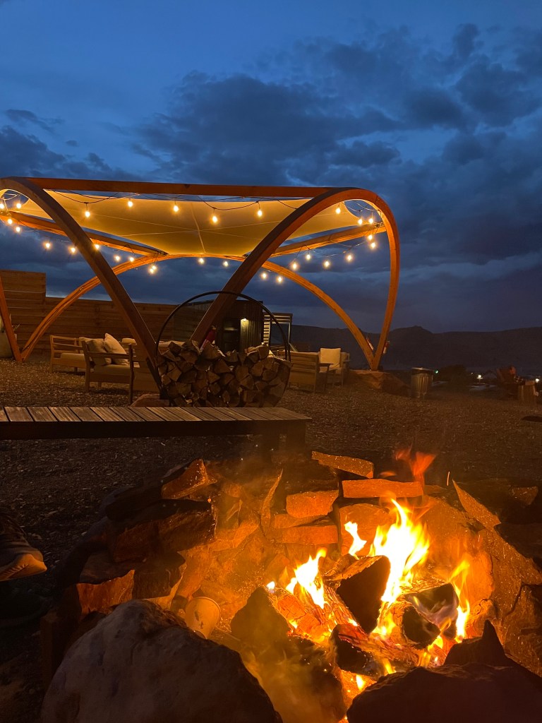The camps main area has a reception area, relax lounge with sofas and a restaurant at the end. We would have thought that the menu would be a bit more fancy but it was what we would call a normal menu with the usual items like burger and such. The outside sitting area with fire pits, nice furniture and free s`mores were cool, and sitting here during sunset and looking over towards Lake Powell and the mesas and buttes was the highlight for sure.