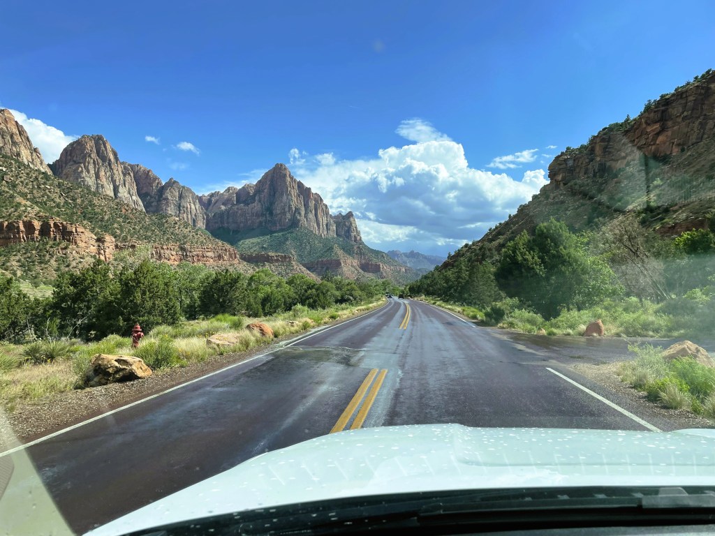 The Zion Park Boulevard, also known as Utah State Route 9, runs through the park from Mt Carmel Junction to the towns of La Verkin and Hurricane. It is accessible all year round weather permitting. We have driven this road a few times, twice from west to east with car and motorbike, and once from the east to the west. Both ways are spectacular but we think that east to west is most scenic of the two. We have used this way to get to Bryce Canyon from Las Vegas on our Loop Tour a few years ago.