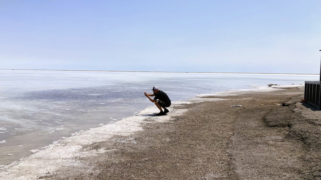 We visited in May, and the flats were all flooded with water, it made it almost eerie to see the water disappear into a mirage at the horizon. Wading in the brine like water was very cool, we had a taste, and yes, it was super salty.