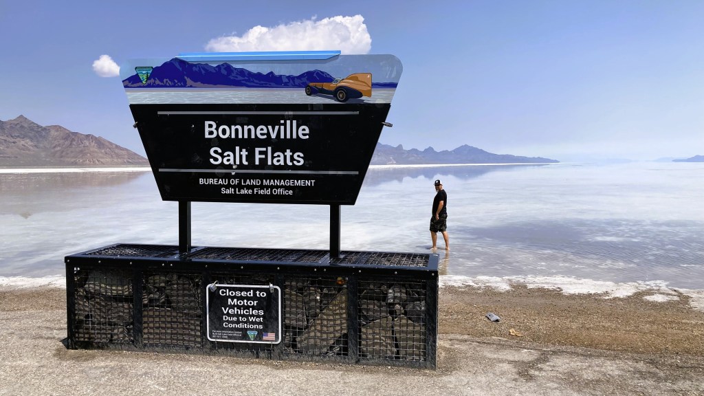 For us Norwegians, salt flats are a rare thing to see, in fact this was the first time we had set foot on such a surface. The drive to the Bonneville salt flats was exciting enough in itself, the signage is epic and the causeway into the salt flat itself was mesmerizing. We have never seen such a landscape, Norway is filled with nooks and crannies, not anything near as flat and endless as the Bonneville salt flats. It was truly amazing!