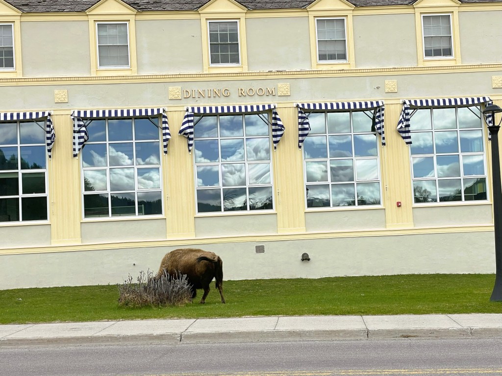 On the way we encountered one of many bison rush hour traffic jams – quite surreal to sit in the car and watch as big herds including many cute calves walked right by us and took their time – after all – this is their habitat, and we were just visitors.