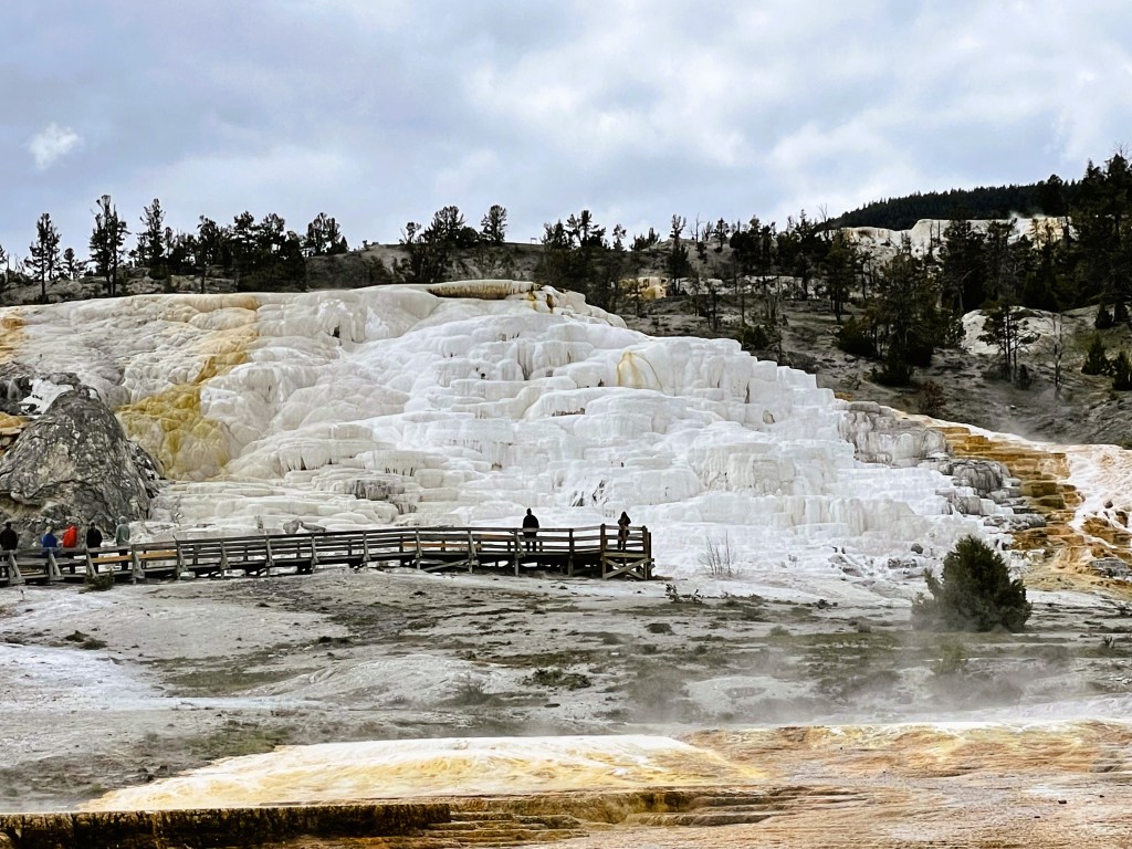 We continued all the way north to the small village of Mammoth Hot Springs, know for the huge white limestone terraces more or less in the city centre.