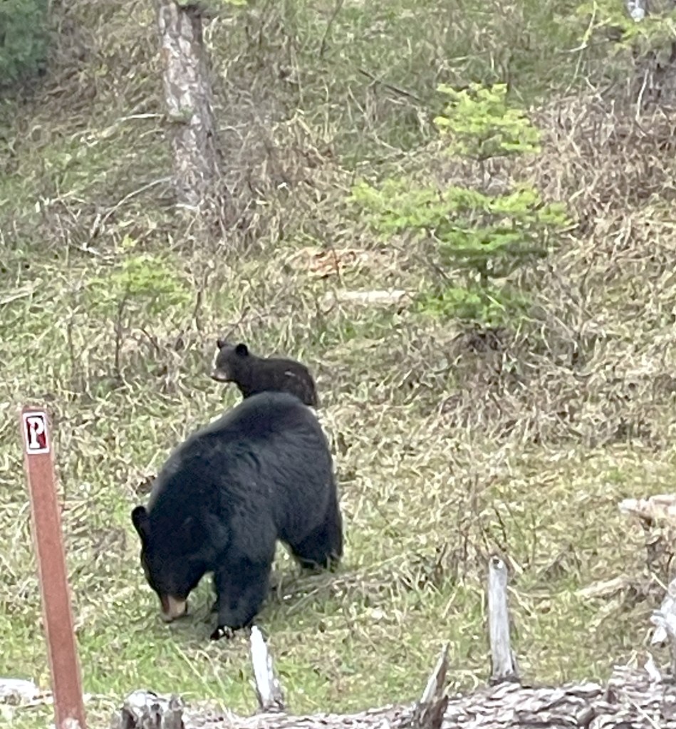 We were not sure if we should even step out of the car but other people did so we figured whoever was slowest back into the cars would be bear lunch. It was so cool watching mama bear interacting with her cub but we were also glad that the lady who walked across the road with her ipad to film a little closer, did not end up as a quick bear snack. Go bears!