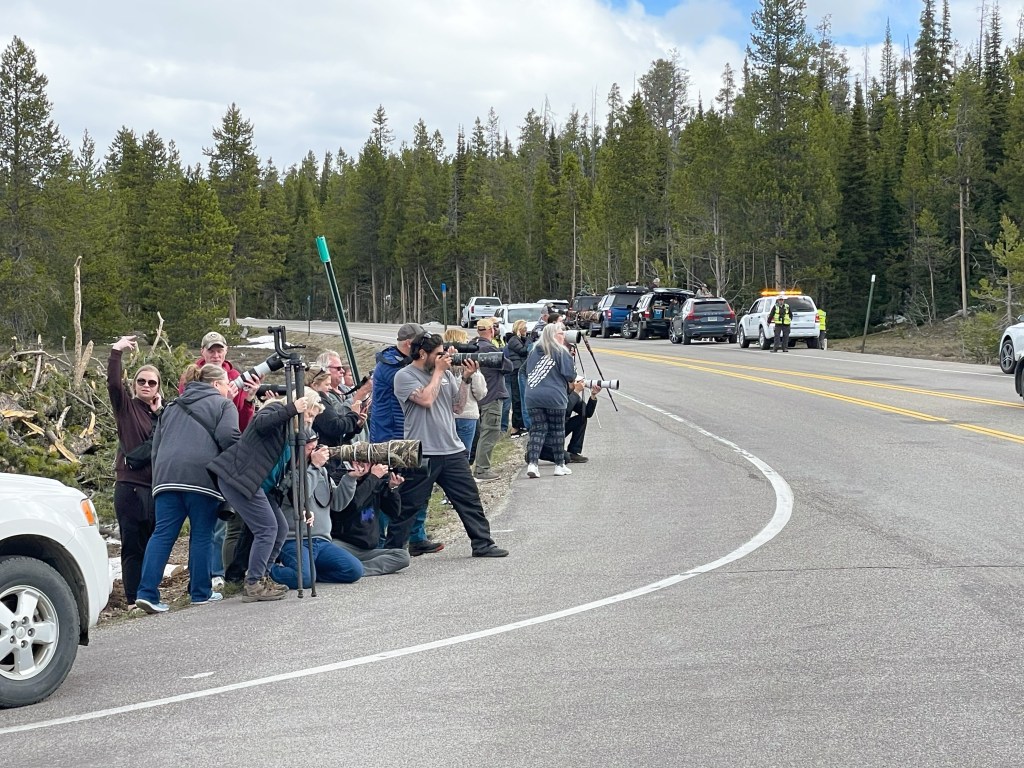 And wouldn’t you know it, we came across another animal traffic jam! This time it was a huge grizzly bear that had just woken from hibernation, and due to its radio collar everybody knew where to find this bear and photograph it.