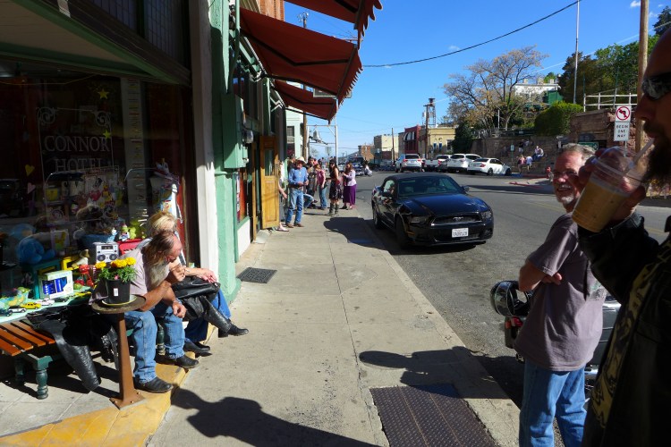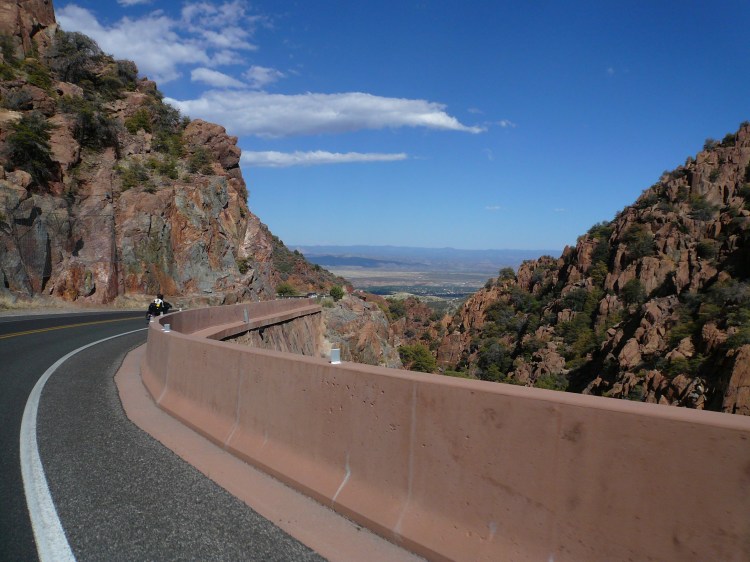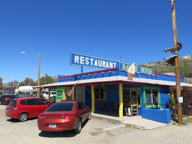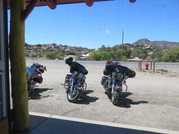 As usual the checkout of the bikes and paperwork was seamless, so little time was needed to get our nice brand spanking new Ultras. We packed the bikes and set off in warm weather from Phoenix and headed north on Hwy 60 towards Wittman, Morristown and Wickenburg. From Wickenburg still going north on Hwy 93 until this splits off to the right and becomes the 89 towards Congress. In Congress you need to head east and continue on the 89 and head into the mountains. Just before you get to Yarnell there is a great place to stop for some lunch, at the Ranch House on the right side of the road. It’s hard to miss, a very colourful building, and a favourite stop for bikers and weekend people getting out of Phoenix. Mum got served the world’s most gigantic portion of chef’s salad – incredibly tasty, but it could easily have fed all four of us. Continue on great roads towards Prescott. In Prescott it gets a bit complicated with many roads splitting into different directions, but head for the 89a to Jerome. From the valley you climb into sublime roads, going into canyons, around bends and giving you breath-taking vistas around every corner. Jerome is a very cool stop on the route.