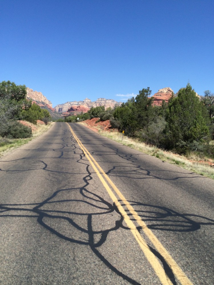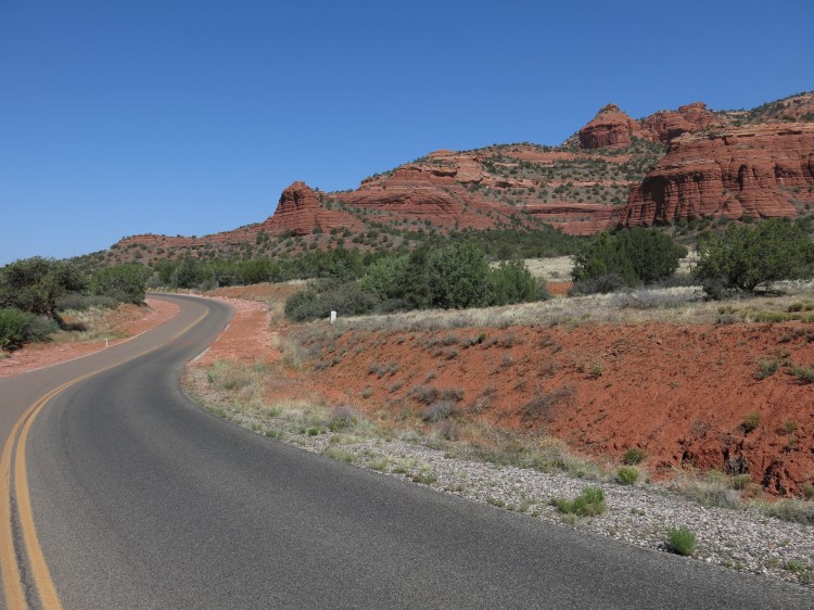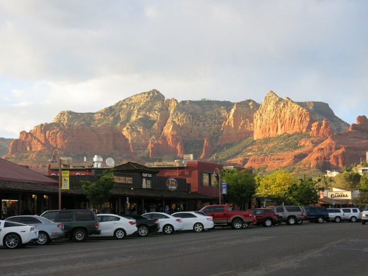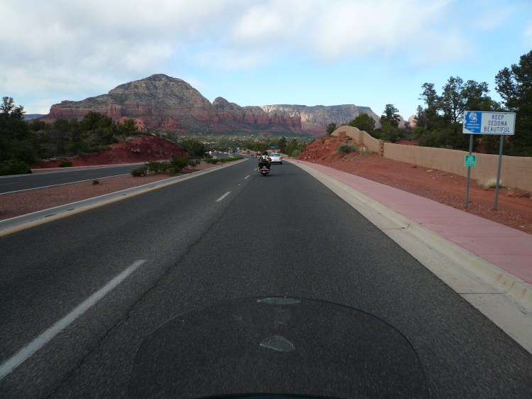 From Jerome you once more dive into a valley, at Cottonwood you follow the 89a towards Sedona. On the approach to Sedona you see the stunning red buttes and monoliths that surround the city – making Sedona a very special place indeed. We arrived late afternoon, so after a quick wash and some clean clothes, we explored downtown Sedona with its many bars, restaurants and shops. And when the sun was setting behind the mountains, the colours of the red sandstone all around town were beaming like maroon emeralds all around.