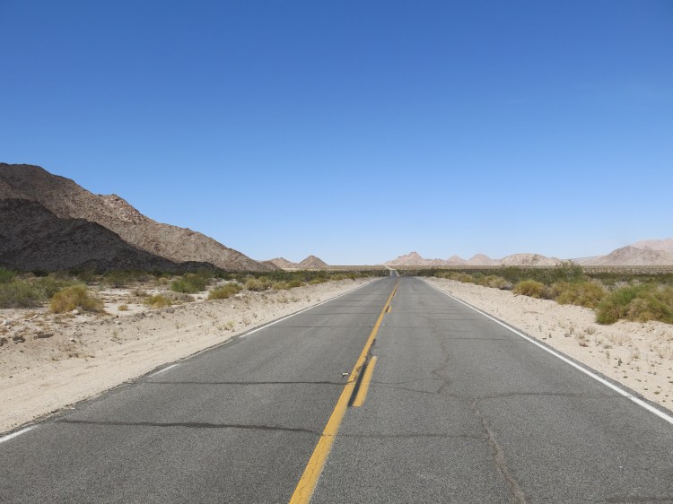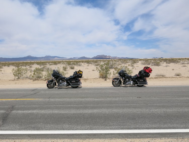 The desert awaits! Remember to fill your gas tank. Continue on Hwy 95 past Lake Havasu towards Parker, in Parker you continue west on Hwy 62. This will probably be one of the more “in the middle of nowhere” roads you will ever drive. Miles and miles of endless desert roads, straight as an arrow. You will be startled by the smallest deviation to the right or to the left in the road, it’s that straight for that long. You will pass some small convenience stores on the way, some old cool abandoned RV parks with faded ragged old neon signs showing past glories. This is a stretch of road we consider one of the most spectacular we have ever ridden on a Harley, the true American outback desert road with tumbleweeds and roadrunners galore.