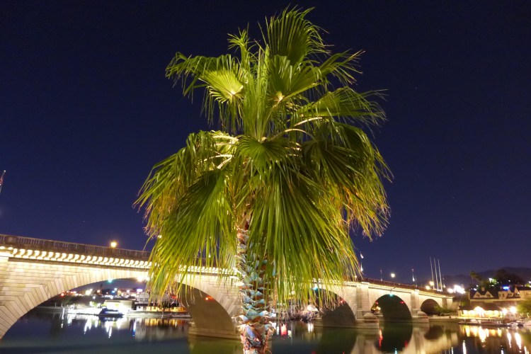 We had booked rooms at Heat Hotel next to London Bridge, a bridge that used to span the Thames river in London. It was dismantled in 1967 and moved to Arizona and Lake Havasu. Only the cladding is from the London bridge, the skeleton of the bridge is concrete. We headed for the nearest bar and had more than one cold margarita overlooking the lake. This stretch also proved how important it is to bring enough clothes – we started out with 7 layers of clothing in the morning in Grand Canyon and were still quite cold, then one layer after the other came off the closer we got to Lake Havasu, and it felt quite strange to change into t-shirts and singlets when arriving at the hotel in Lake Havasu.