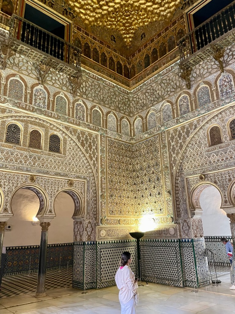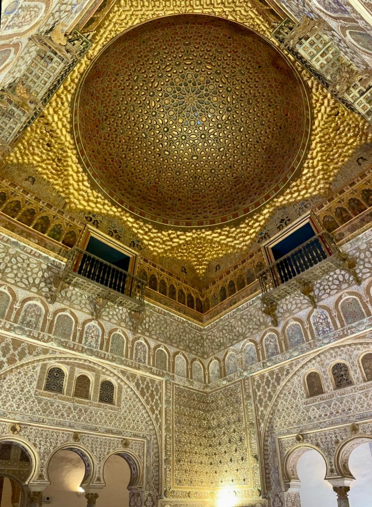 Specific Locations in the Alcázar Used in GOT, Ambassadors Hall (Salón de los Embajadores), used for some interior scenes, showcasing the golden dome and intricate tilework. It is a grand room with a golden domed ceiling and elaborate decoration, used for receiving important guests for those real life VIPs back in time not affiliated with GOT.