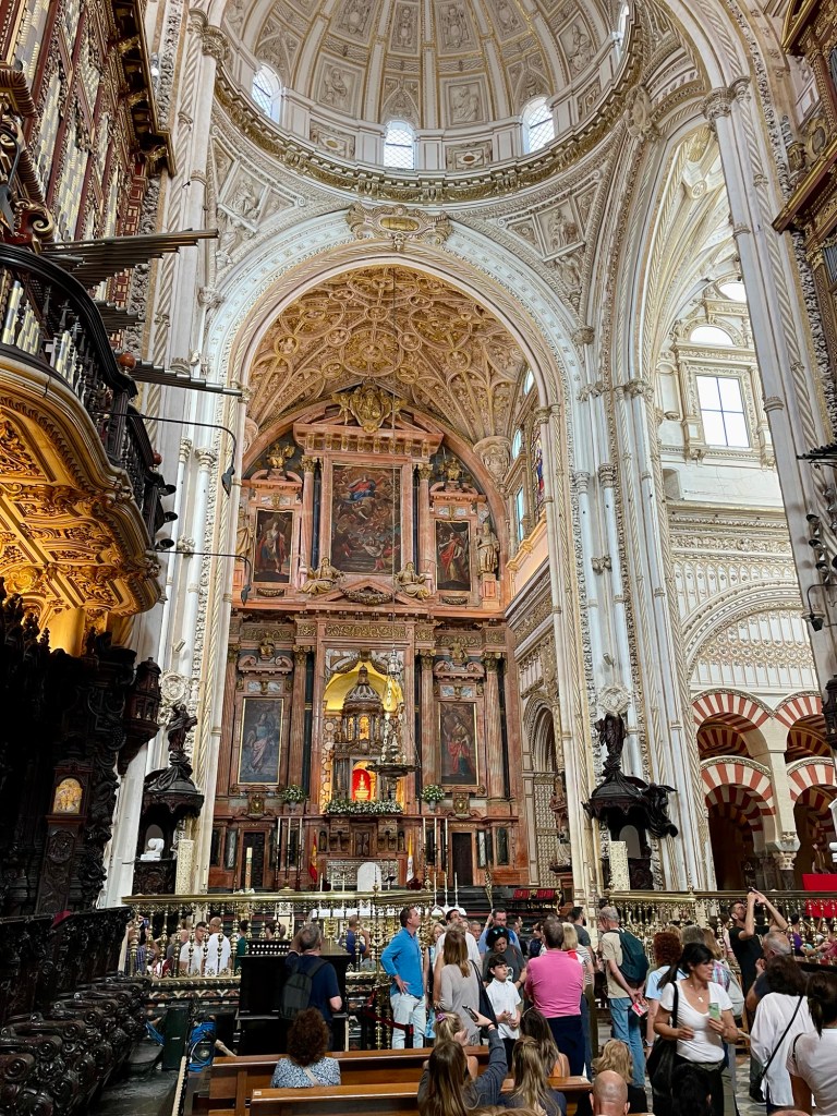 In the 16th century, a Renaissance-style cathedral nave was inserted into the heart of the mosque under the direction of Charles V, the Holy Roman Emperor. This includes a high altar, choir, and chapels with ornate Baroque and Gothic decorations.
