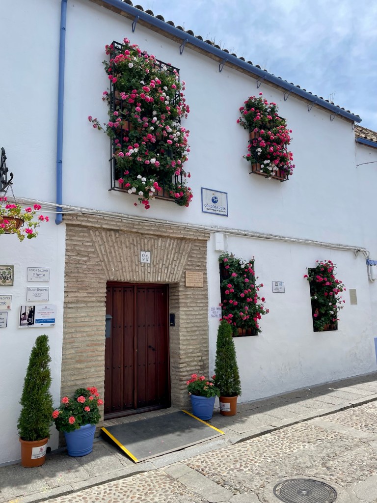 Córdoba is famous for its Fiesta de los Patios in May, where locals decorate their courtyards with flowers. We were super lucky to be visiting just when the festival was in full swing. Flowers on houses and in courtyards everywhere, very beautiful!