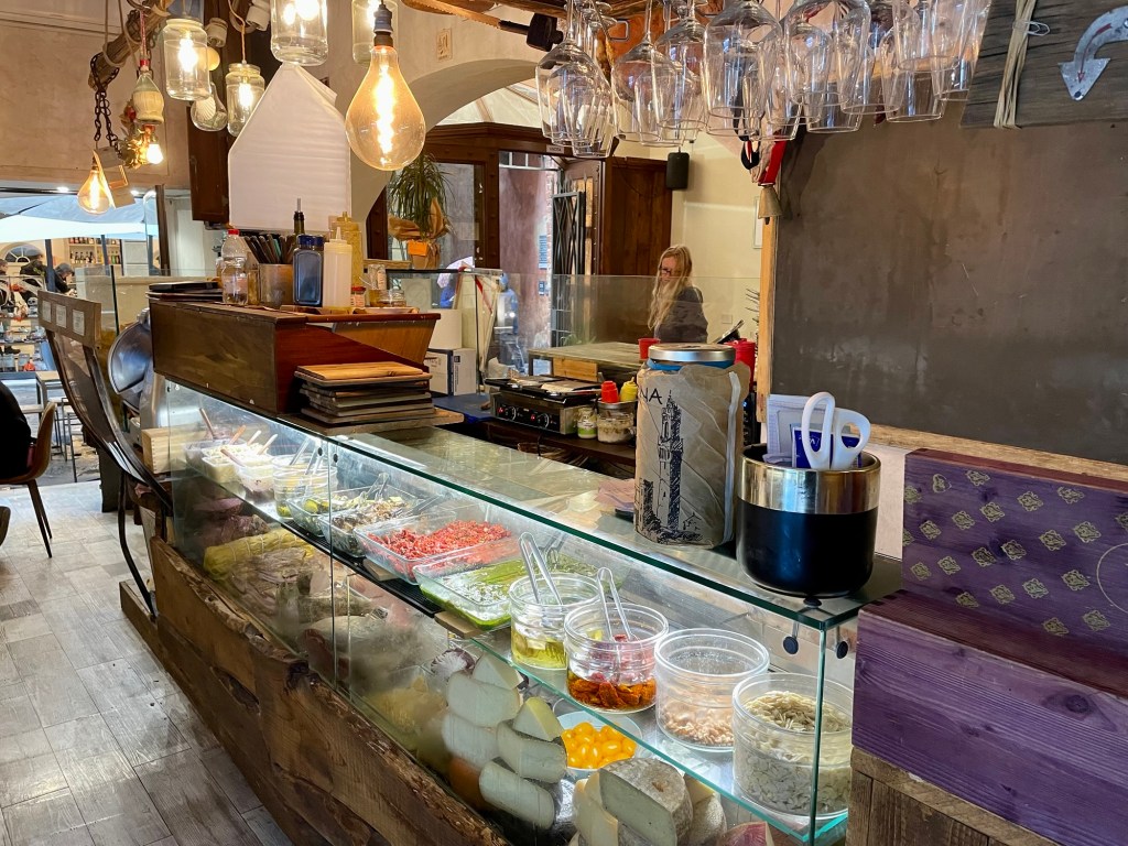 We wandered the streets of Siena, drenched, and we happily and luckily came across a great sandwich shop that served delicious panini. Du Cose da Berna was a highlight both for warmth, dryness and absolutely first class paninis.