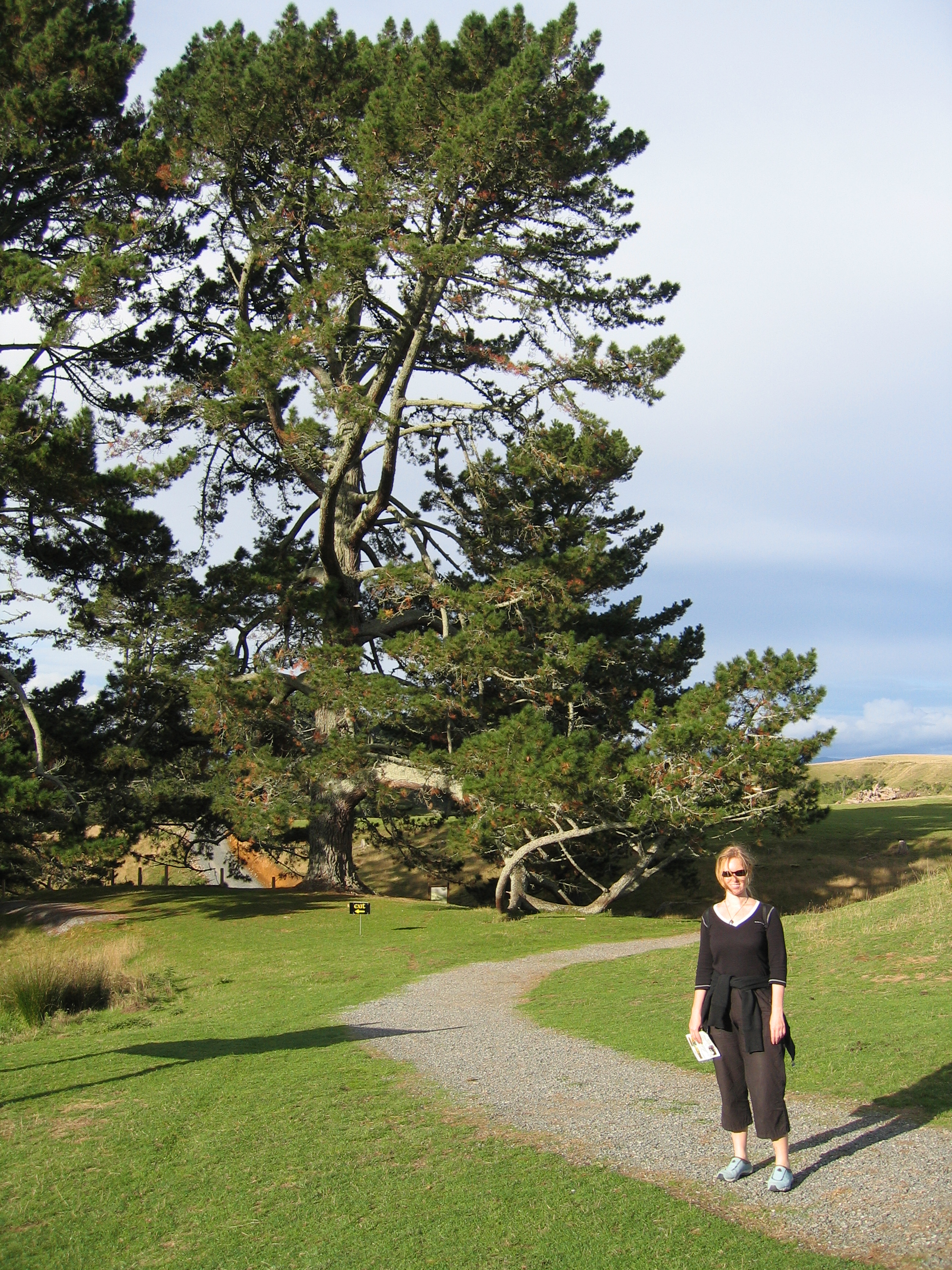 When we visited in 2005 the whole visitor thing was lightly organized, we had to buy tickets and were transported by an old bus to the site. The site itself was recognizable as Hobbiton, partly by the big party tree, the small lake, and the remains of some Hobbit holes. Most of the holes were just planks that supported the small openings, the only hole that you could walk into for about a metre was Bilbo`s hole at the top of the hill. There were some paving slabs outside and stairs, and you could see some remains of styrofoam shaped to be cobble stones on the outside wall of the hole. And that was it basically, and we were of course stoked beyond stoking by the whole experience. After the Hobbit movies production in 2012, they kept the set as built, so now the site looks like the real Hobbiton from the movies. We are not sure what would be cooler, visiting an almost deconstructed site and using our imagination with only a few other movie buffs, or visiting a full on tourist destination….