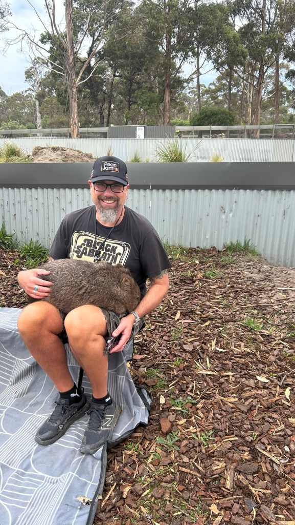 The tour was awesome and we got to feed sugargliders, cookaburras, echidnas, kangaroos and Tasmanian Devils. The highlight was holding 10 month old devils on our laps. Although Ørjan got quite smitten with Dottie the wombat who chose to sit on his lap for a long time.