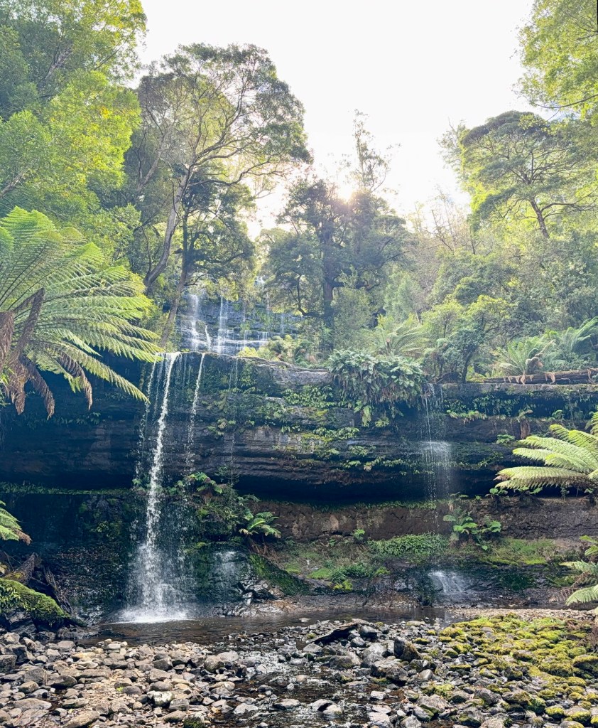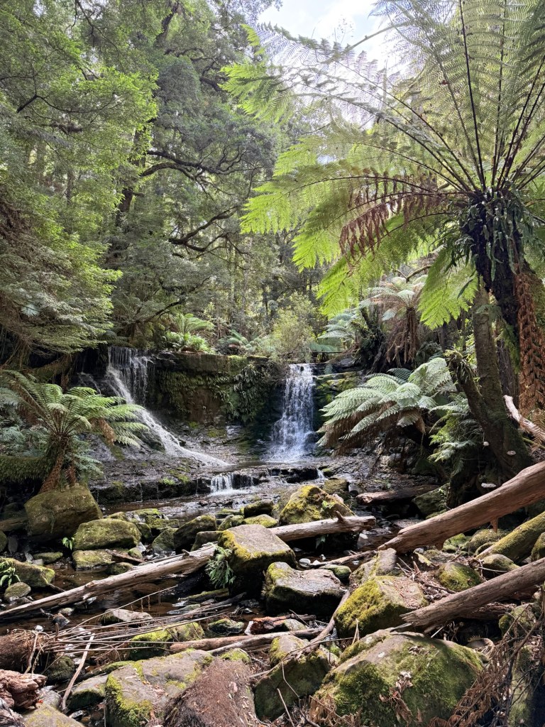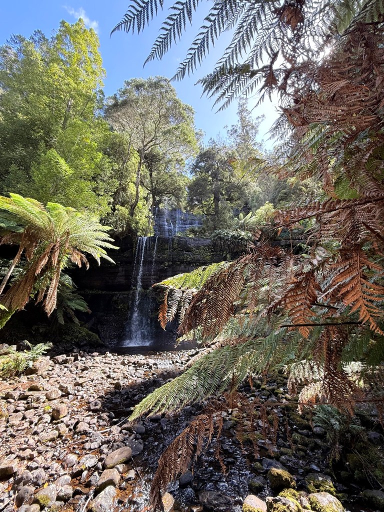 Located just behind the Mount Field Visitor Centre, the Russell Falls walk is one of Tasmania’s most beloved and accessible short walks. Russell Falls is one of Tasmania’s 60 Great Short Walks. There was ample parking by the visitors centre, and the track is wheelchair-accessible and paved all the way up to the bottom of the falls and the very nice viewing platform there. About 1.4 km return, typically taking 20–25 minutes at a leisurely pace.