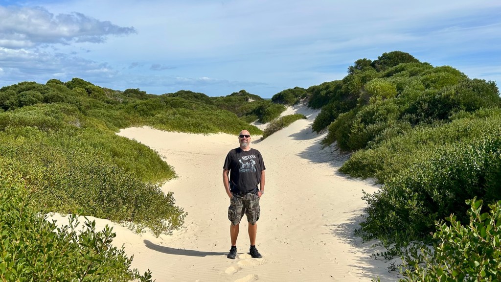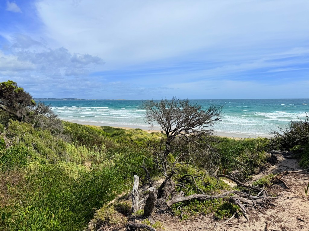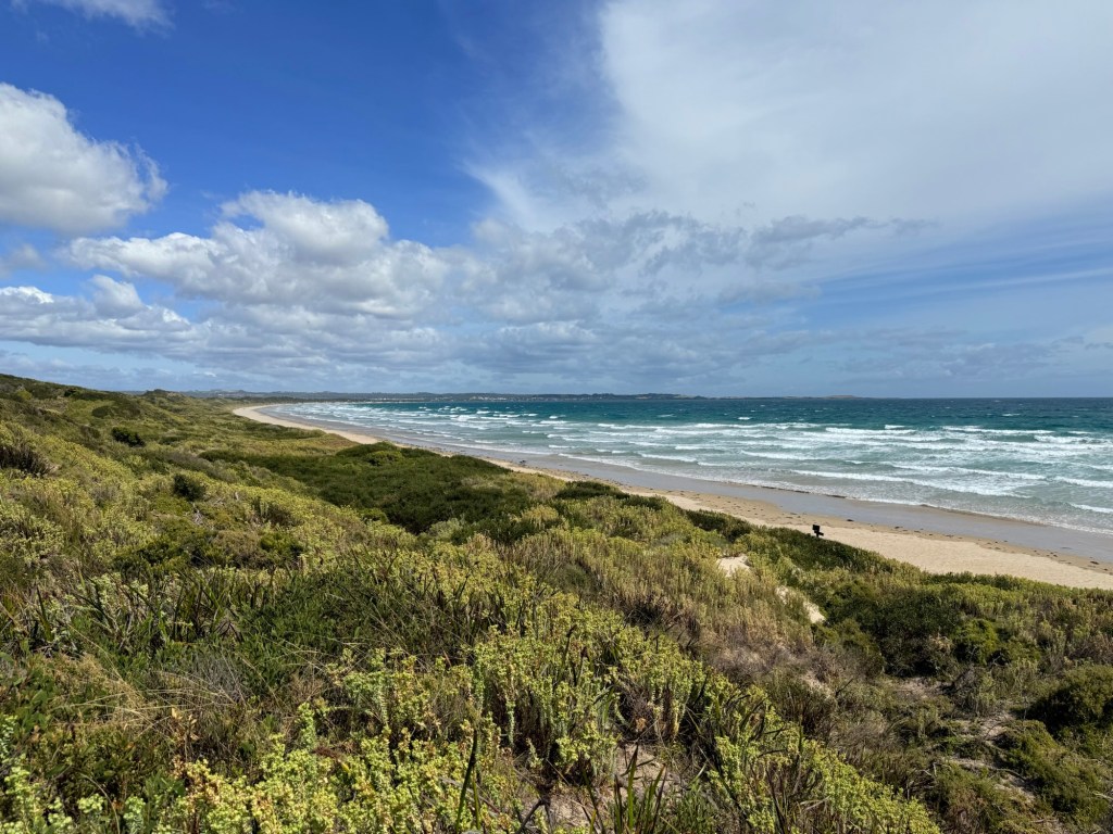 There are lots of walks that are popular in the park Archers Knob (a 9 km loop with stunning views), Coastal Traverse (a one-way 21 km journey between Bakers Beach and Greens Beach), and the challenging Point Vision Track (15 km return, leading up to 370 m elevation). We chose to walk along the lake to the bird hide, and continued aling the backside of the dunes until signage told us to go left towards the beach.