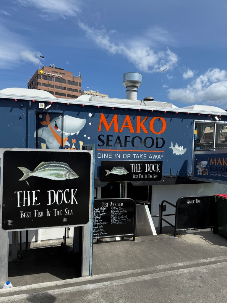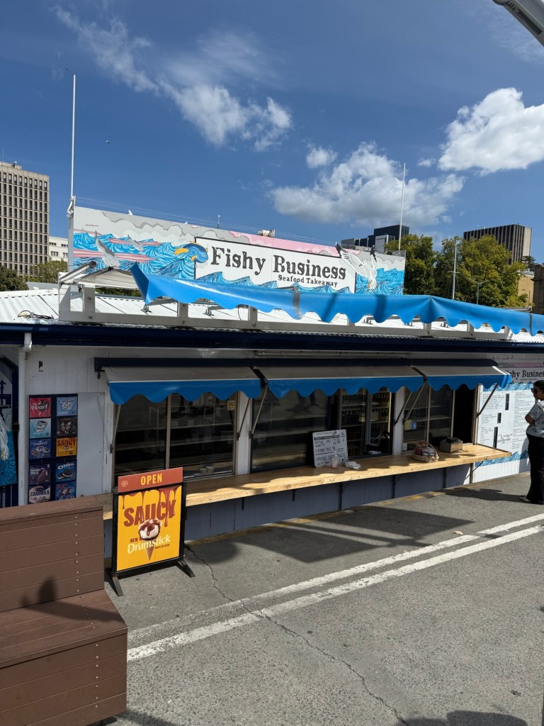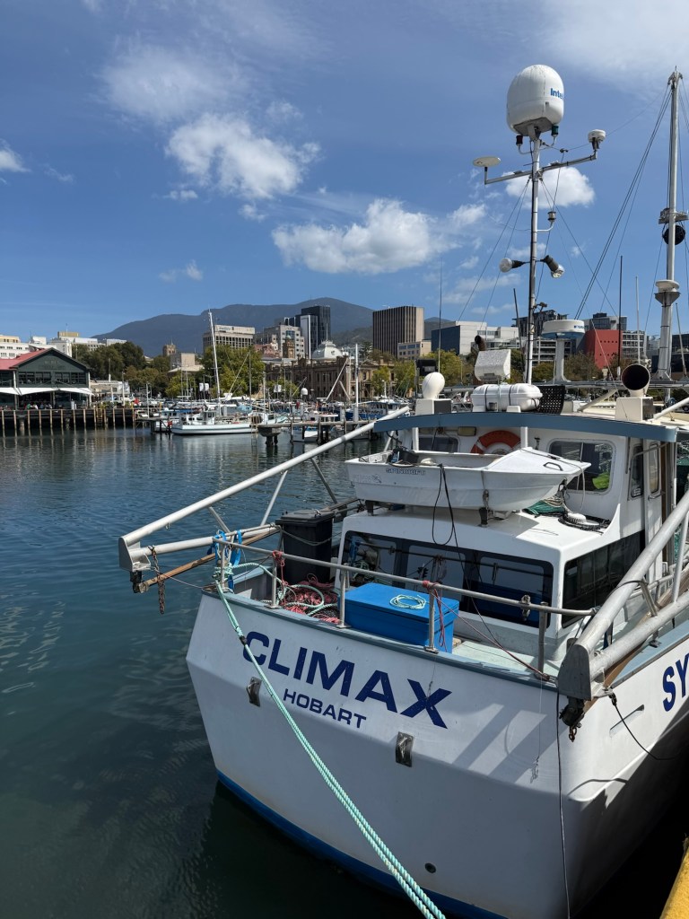The harbour at Franklin Wharf was great, with floating take-away restaurants and fishmongers. While there, we chatted with a local woman waiting for her doctor’s appointment at the Bernacchi Tribute Sculptures, a monument to Antarctic explorers.
