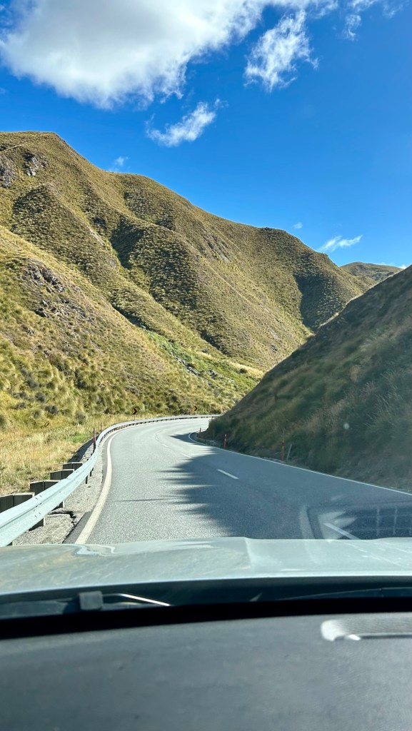 We were back on the Crown Range Road, a route we last drove 20 years ago. From Arrow Junction, the road winds and climbs toward the summit, offering incredible views over the valley below, Queenstown, and Lake Wakatipu.