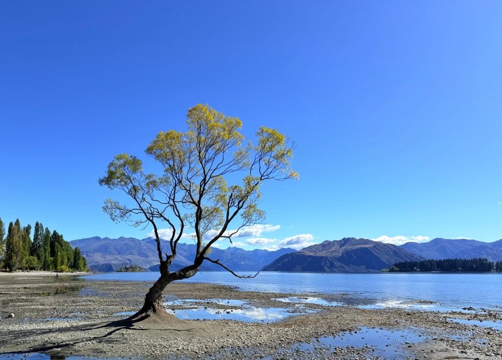 Our first stop was, of course, That Wanaka Tree. It’s probably the most photographed tree in New Zealand, with its own Google Maps tag and a steady crowd of influencers and tourists. The scene was both impressive and a little sad — so many people trampling its roots and even hanging from its branches. We hung back, amused, watching small groups of influencer girls striking poses and changing outfits for that perfect Insta shot.