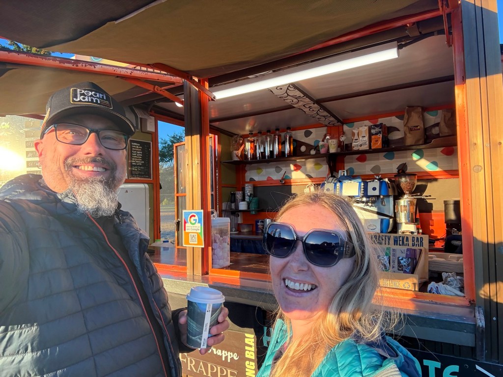 First stop, as the sun rose, was the coffee wagon in Twizel for some much-needed caffeine fuel.