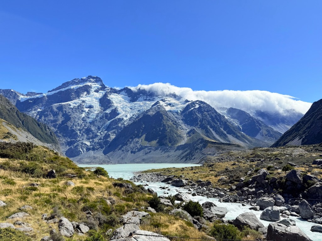 Lo and behold — Mount Cook! The clouds finally lifted, and we were gifted the sight of Aoraki, the Cloud Piercer, for the first time in 20 years. It was spectacular.