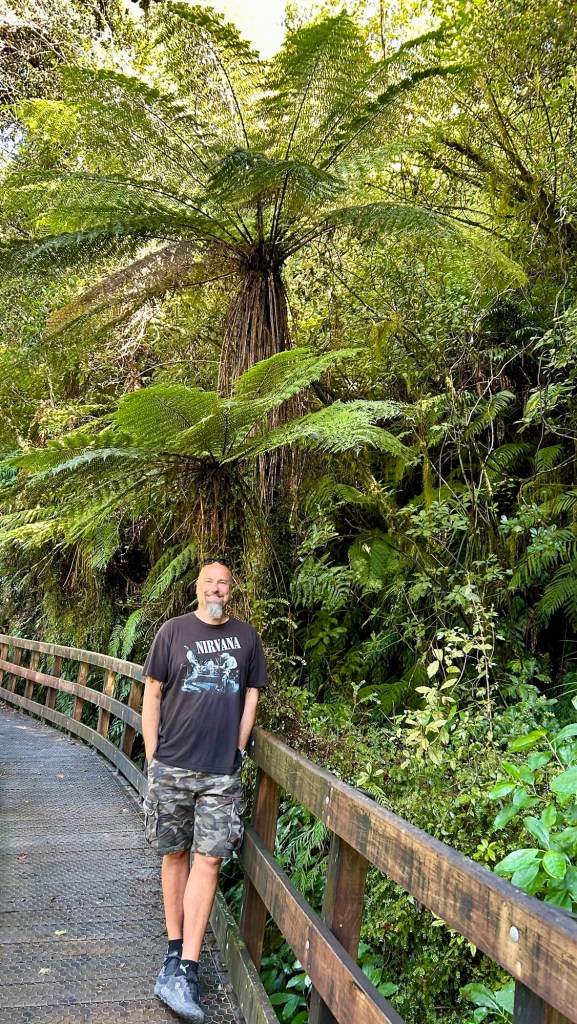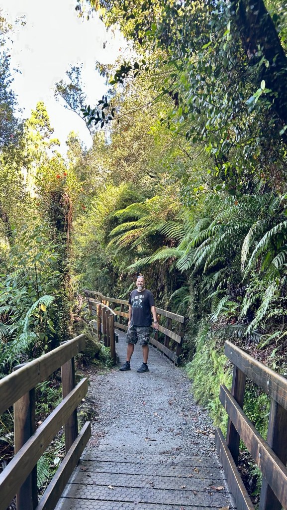Crossing the bridge, you’re enveloped by rainforest — ferns and moss dripping with moisture, waterfalls tumbling down the hillsides, and birds calling overhead. At times, the boardwalk hugs the rock face so closely that you can reach out and touch the damp stone.