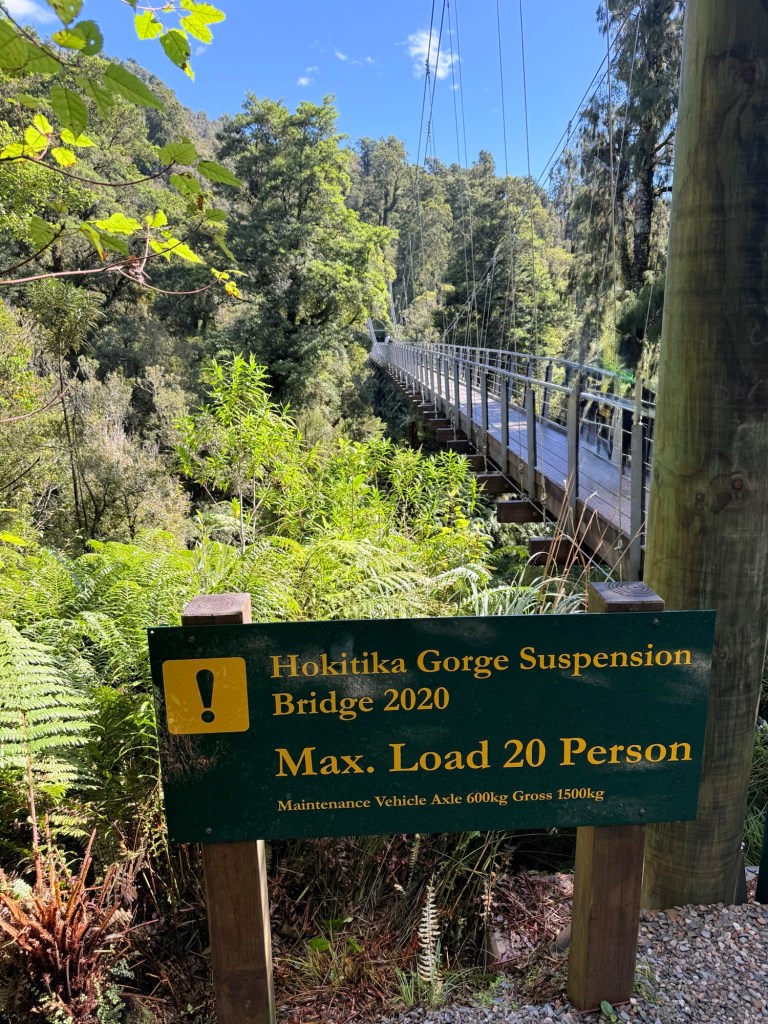 Suspension bridge overlooking the glacial river at Hokitika Gorge