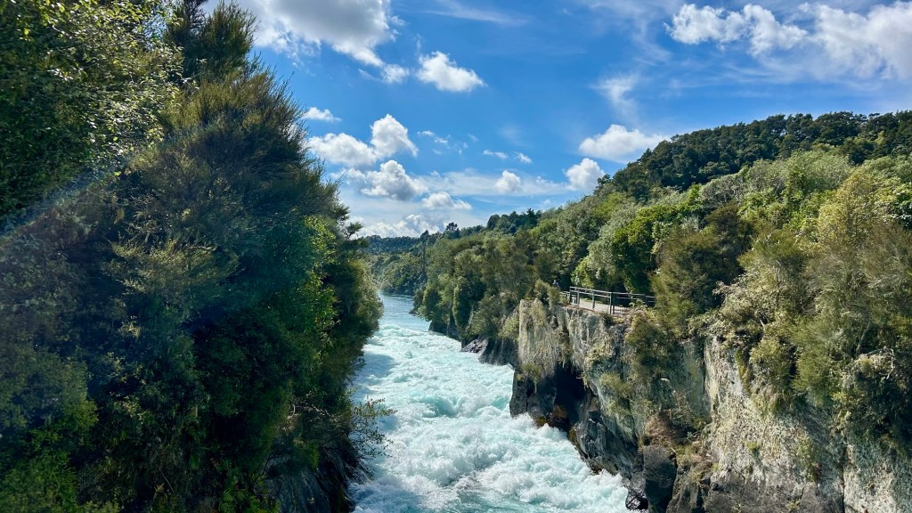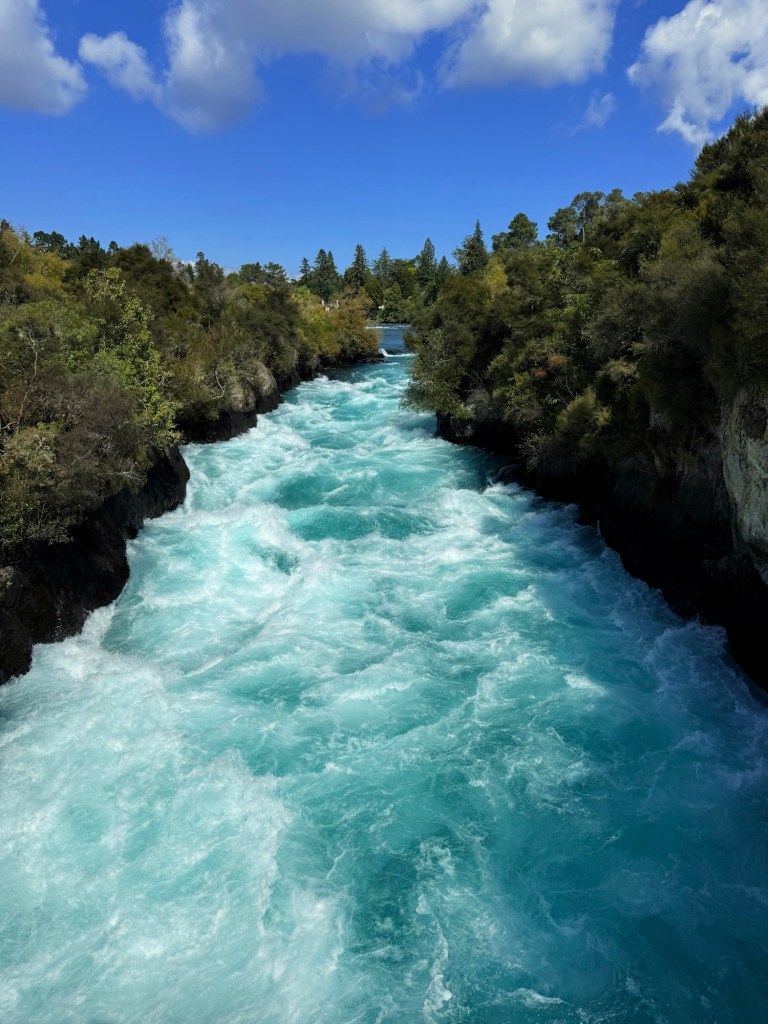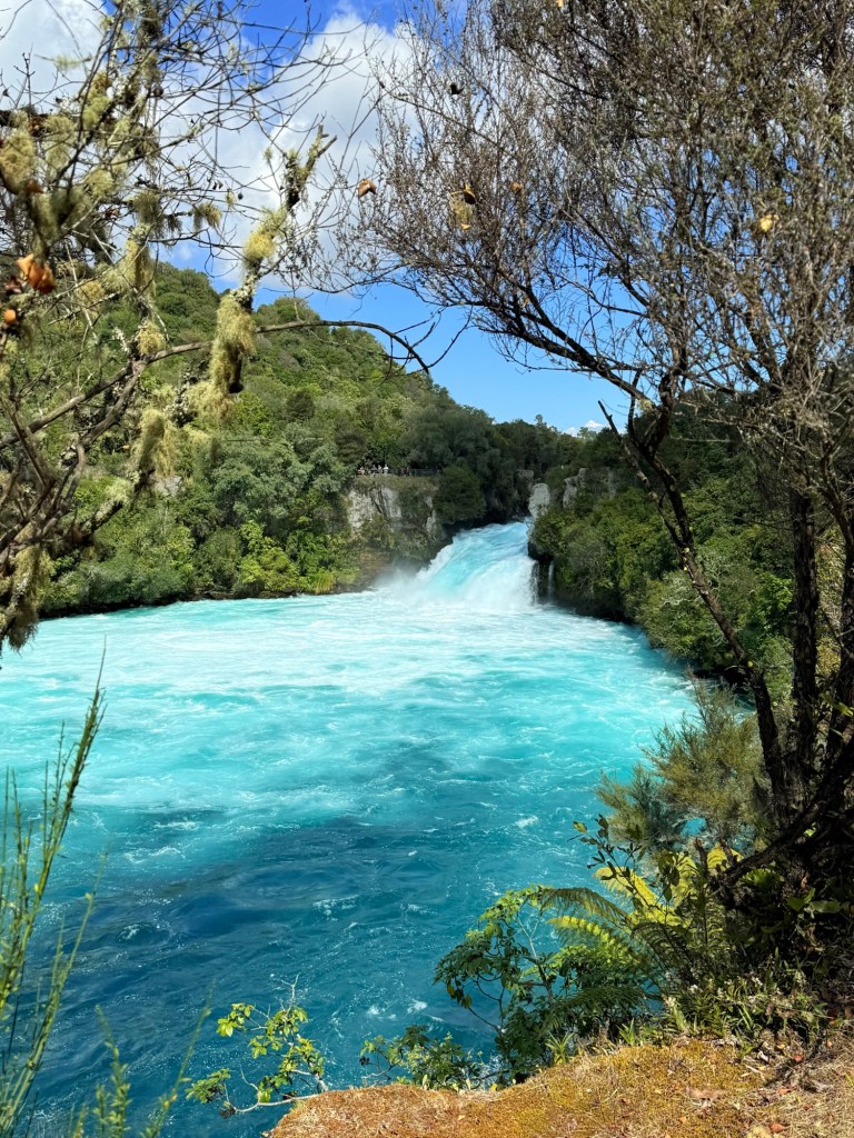 Just a few minutes drive outside Taupo is a true force of nature, the Huka Falls. It is a must visit, and every time in New Zealand, we have gone to see this amazing sight. When you stand on the bridge across the narrow flume of raging water, you can feel the force of it in your bones.