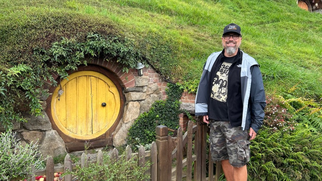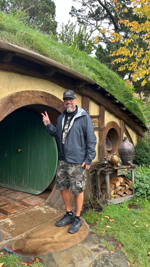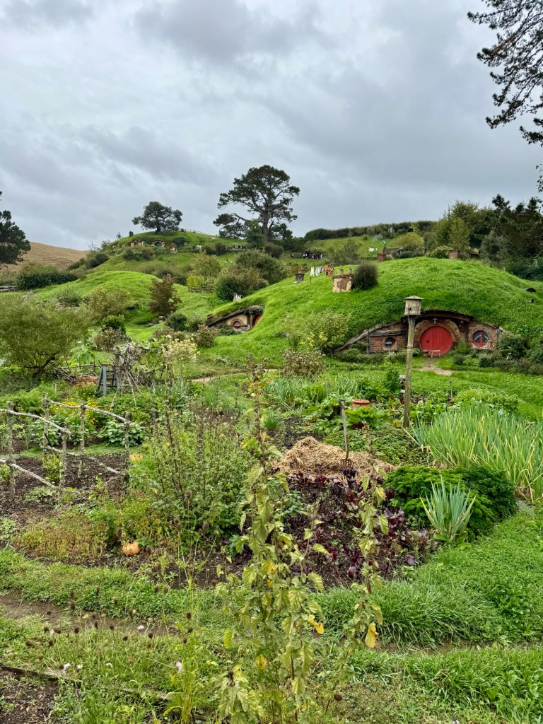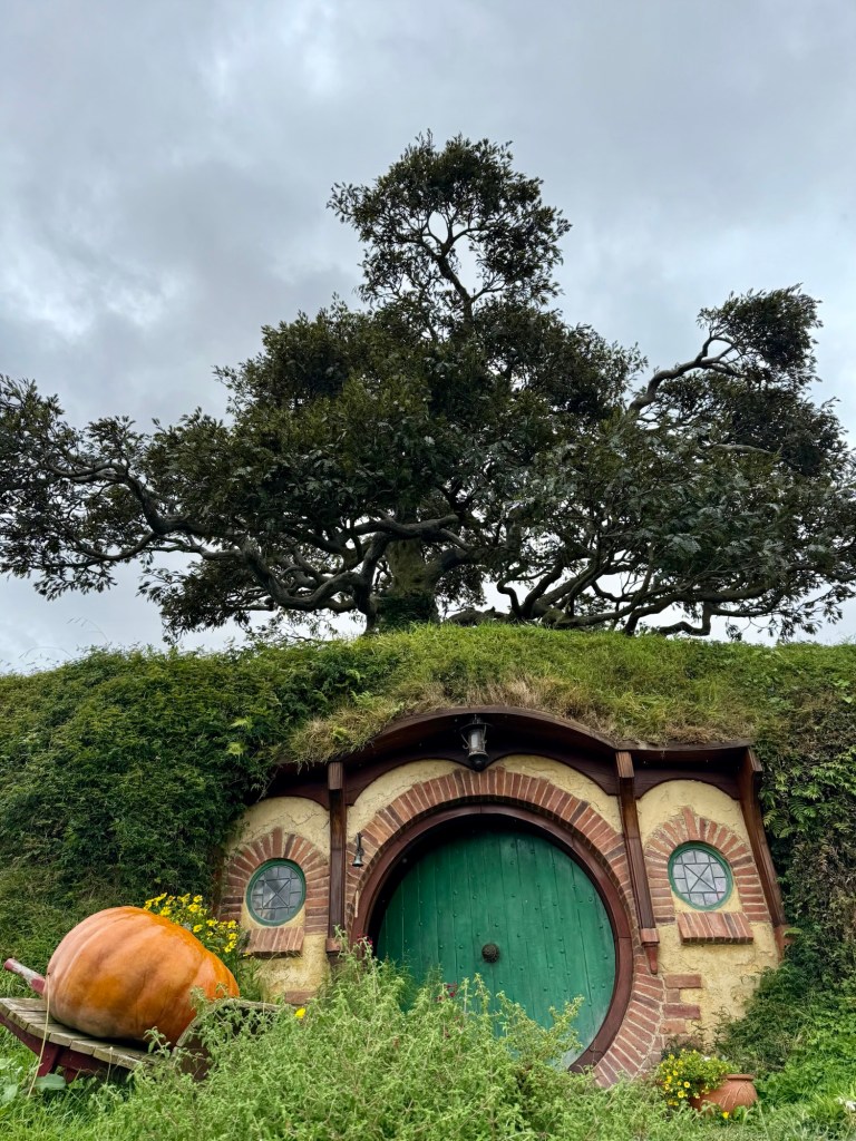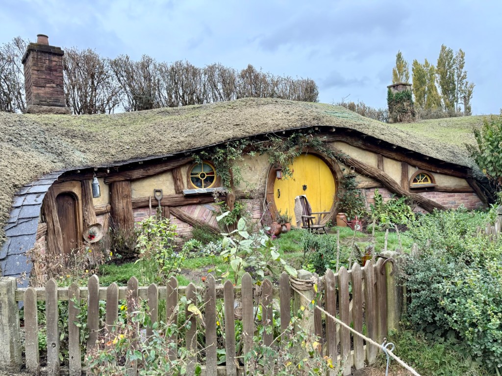 In 2025, it felt a bit like “Disney (Hobbit) Land” in New Zealand. Buses and tours depart every ten minutes. When you enter Hobbiton there are tours in front of you and tours behind you, with guides working hard to organize the groups as they move from spot to spot around the set.