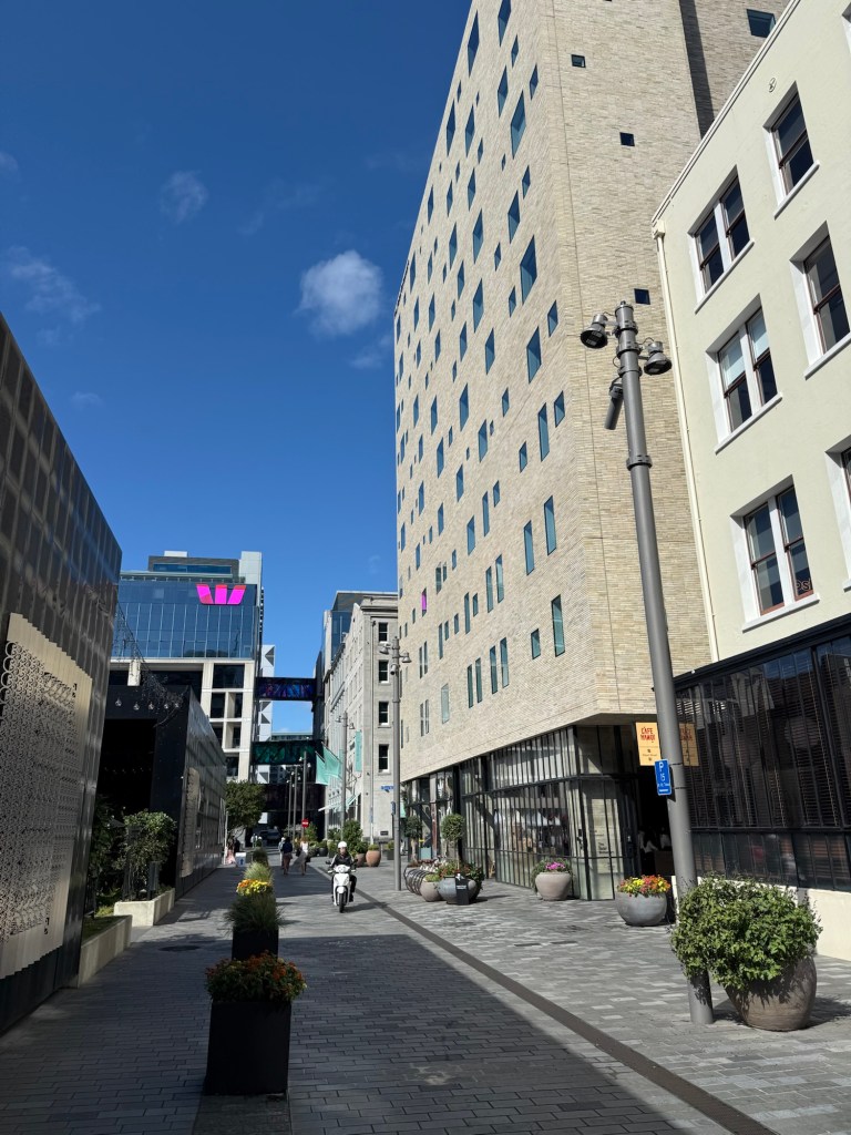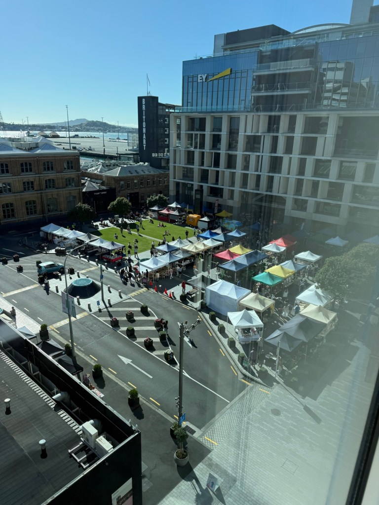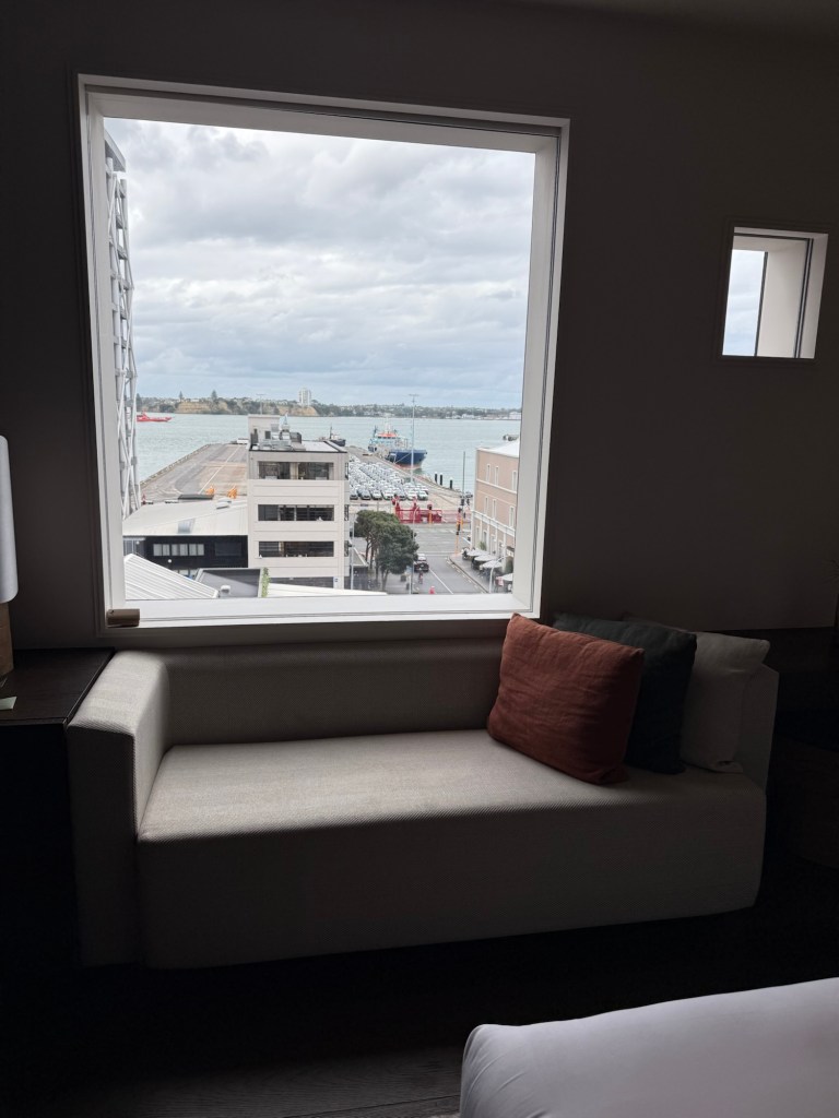We decided to splurge on our final nights in New Zealand and booked a room overlooking Takutai Square, with views stretching across Britomart and out to the harbour.