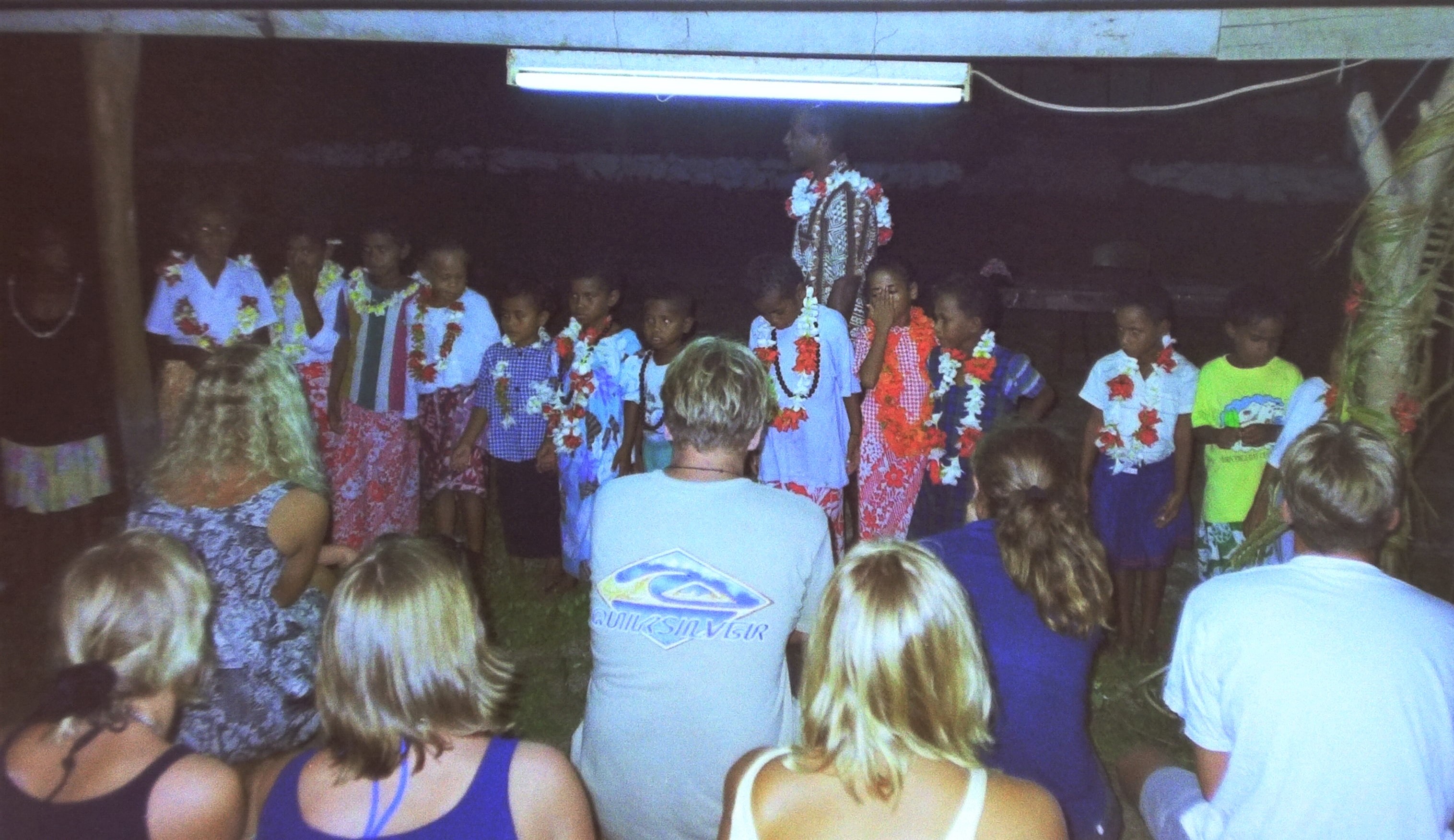 It has been a few days since my last entry. Mainly because we have done the same thing every day for a few days now. Up at 08:00 for breakfast, walked to Sunset Beach and back again for lunch at 13:00. Relaxed and played beach volleyball in the afternoon. Dinner at 18:00 and then card playing with Pernilla and Anders. Early to bed every night since the power gets cut at 22:00. We had one excursion to the village to see the children sing, and it was great. There are quite a lot of Norwegians and Swedes on this island we have found. We had a friendly match between Sweden and Norway at the beach volleyball court, Norway won! Yesterday the weather was ok first and then it went over to heavy rain and high winds. We have packed our stuff since we are leaving tomorrow. The night was heavy with rain, thunder, and wind.