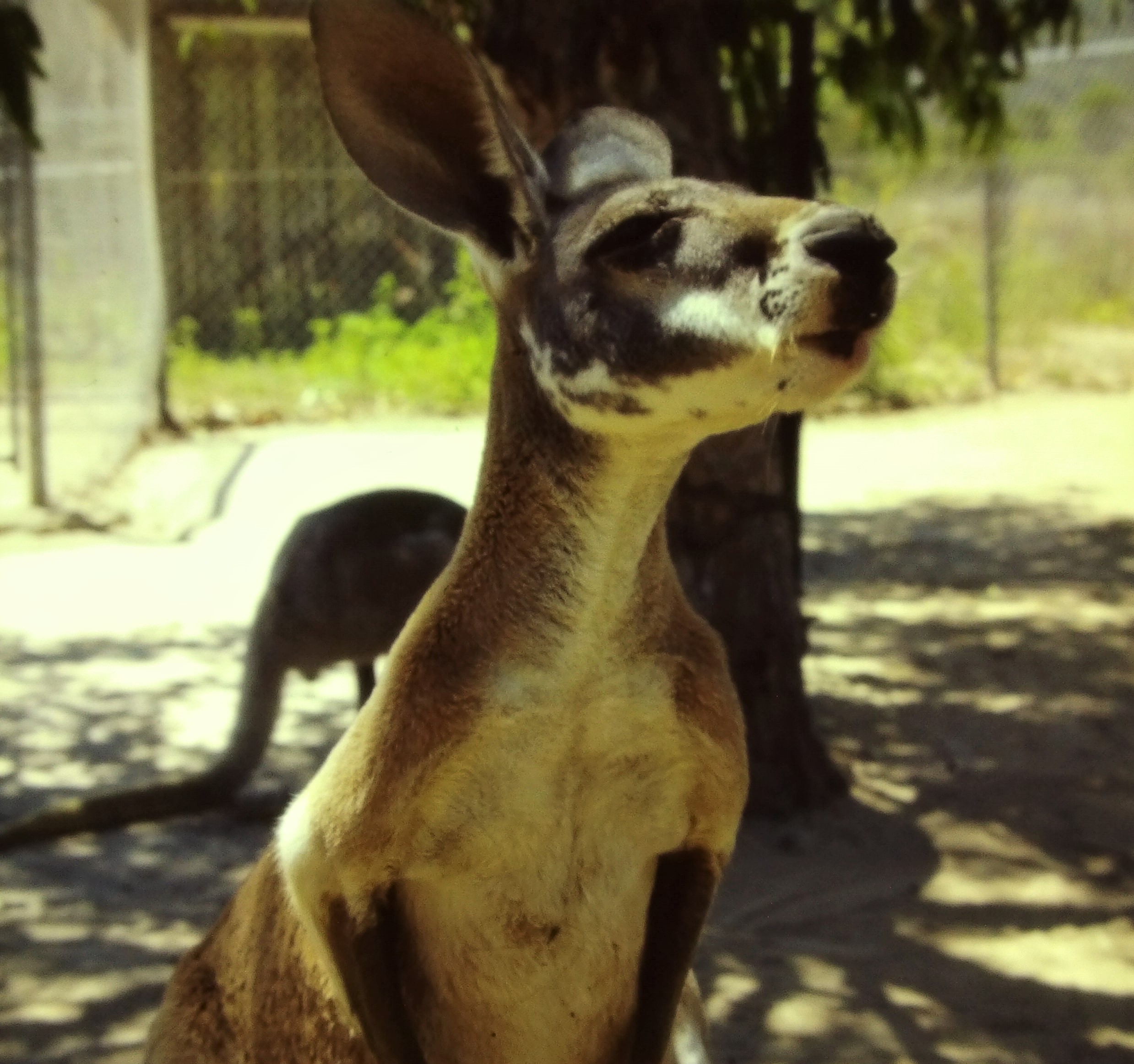 Up at 05:00 to get to the bus departing at 06:00. After lunch we got to Katherine Gorge, a series of gorges filled with water. We stayed at a tented camp, small 2-man tents with a BBQ area. We had a very nice boat ride up the gorge. And we had time to go for a swim in waters that supposedly only had freshwater crocodiles and they only nibble your feet. The trip in the gorge was amazing. The rockface climbing 65 metres straight up above us. In the wet season the water rises by 5-7 metres. On our way back to the tents we saw the cutest wallabies grazing on the lawn, we could almost pet them! My first marsupial. Back at camp we had a delish BBQ with beers. It was around 40 degrees Celsius in the daytime, and it did not feel like much less at night. After dark even more wallabies came to graze, we got some great photos we hope. After battling with an army of ants that had occupied our tent, we tried to sleep but it was difficult due to high temperature and strange noises from wallabies and kookaburras outside our tent.
