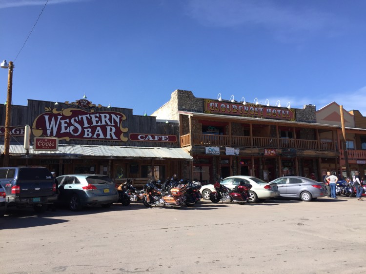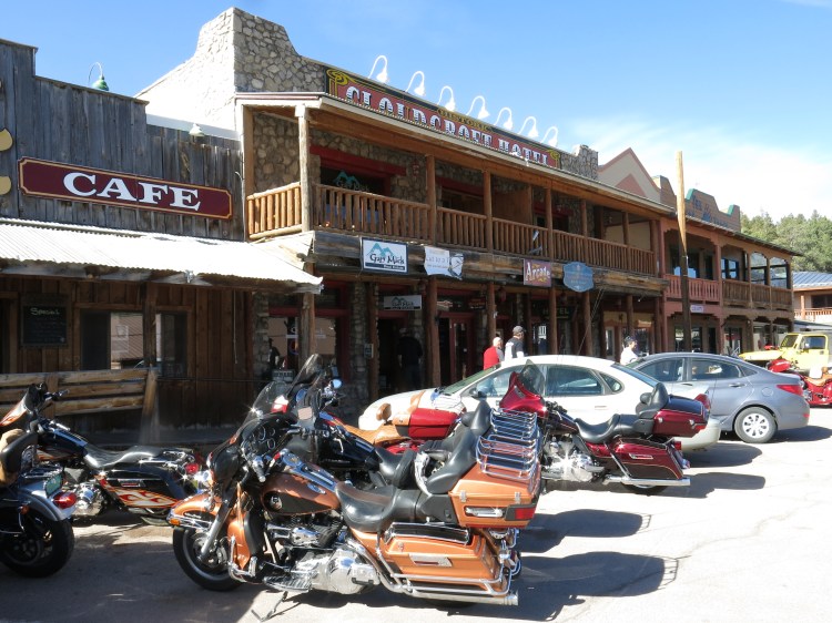 Since we arrived early in the afternoon, we just dropped our excess baggage at the hotel and took a ride on a very cool road starting just north of town into the mountains, and up to the town of Cloudcroft. At 2644 metres above sea level (one of the highest towns in the US), it has a bit of that cowboy frontier town vibe. A great start for hiking and mountain biking, and it’s known for nice summer temperatures, compared to the desert basin below in the valley. The town itself was the product of need for timber, the establishment of a railroad and the insight that this place might attract tourists. We of course met our Indian friends from the morning here, and they invited us to join them for lunch, and laughed merrily at our little detour. They also recommended us to take the drive to the Sunspot National Solar Observatory, along the New Mexico Scenic Byway 6563, and the drive was cool and twisty under huge conifers. The observatory itself was deserted, we were the only people there, but the views from the top down to the desert were spectacular. The observatory was cool but closed to the public when we visited.