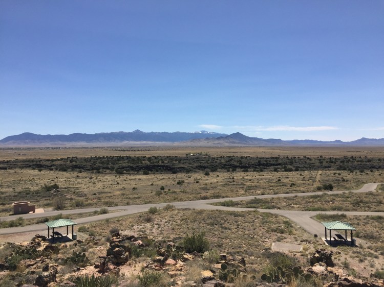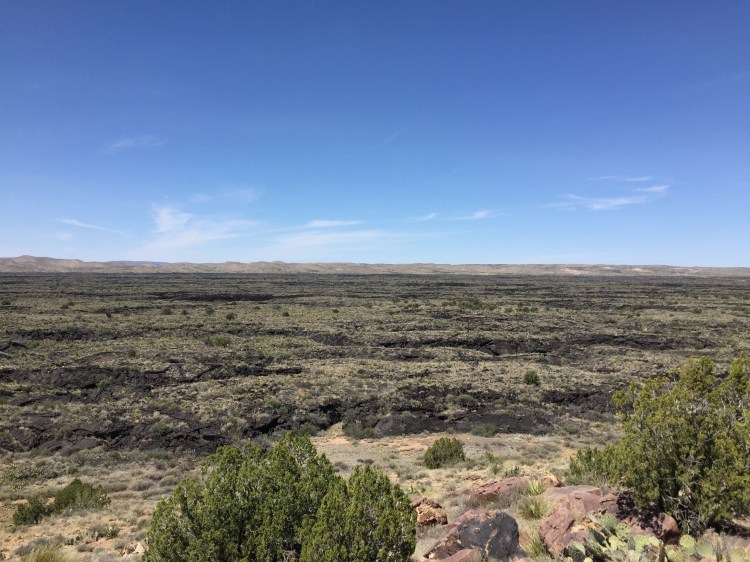 If you use google earth and zoom out on the area, you will see the bright white area that is White Sands, but further north you will see a pitch-black area, which is the Valley Of Fires. When you get to Carrizozo take a left and drive west on the road to San Antonio (US 380), a mile down the road you will get to a site where there are some great walks.