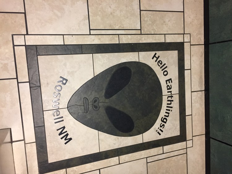 Continuing east, the road is spectacular, following the river and valleys, green and lush until you meet Hwy 70 and the landscape flattens out before you get to Roswell. The town being known for being possibly the only site where an UFO crashed , it carries its fame on every sign and every store. In the elevator at our hotel there was a picture of an alien, we stayed at the Alien Suite, and our hotel key had an alien on it. If ET could phone home, he would do it from Roswell. If you want to visit the actual site, you have to go out of town, we did not go. Since we had spent more time than we thought we would on the road that day, we only had an alien burger with interplanetary fries and plasma lemonade and headed for bed.