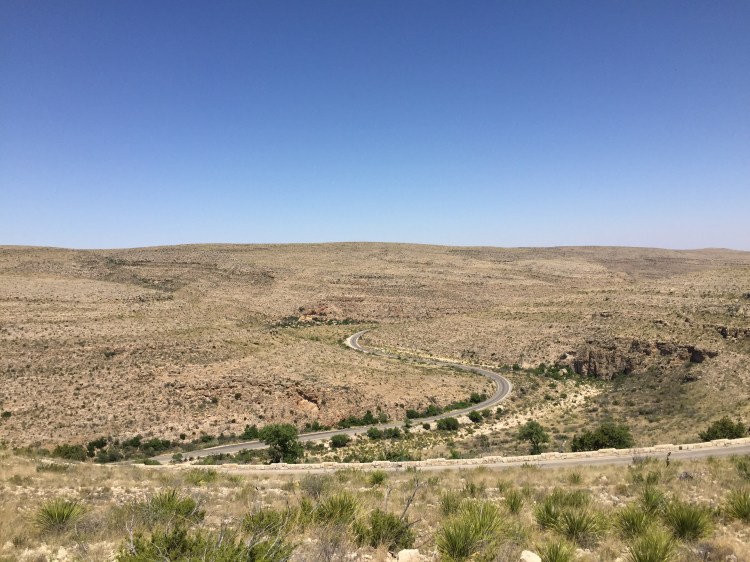 Riding south on Hwy 285 towards Carlsbad, we had no other stops planned than the Carlsbad Caverns that day. The road here was nothing special until we turned onto Hwy 180 (62) west towards El Paso again. At Whites City (more like an RV park) you go up in the mountains and will after a while get to the entrance of the Carlsbad Caverns. The road here is a great one, winding its way through valleys and gorges up to the plateau where the entrance is.